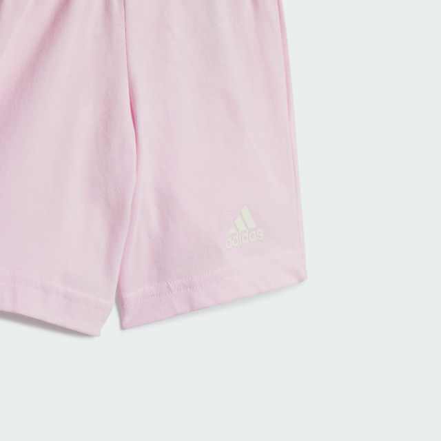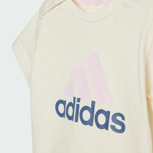 Introduce the little ones to athletic style early with this gender-neutral, essentials organic cotton logo tee and short set. Part of the accessible wardrobe staples range, this set is made from organic knit cotton, providing comfort for all-day play. It features a big sportswear logo on the chest and classic 3-stripes on the shorts, blending fashion and sports in signature adidas style.This infants' adidas t-shirt and shorts set is perfect for your little one. It's made from organic cotton jersey for a soft, smooth feel. The shorts let them crawl, explore or go through their active day comfortably.