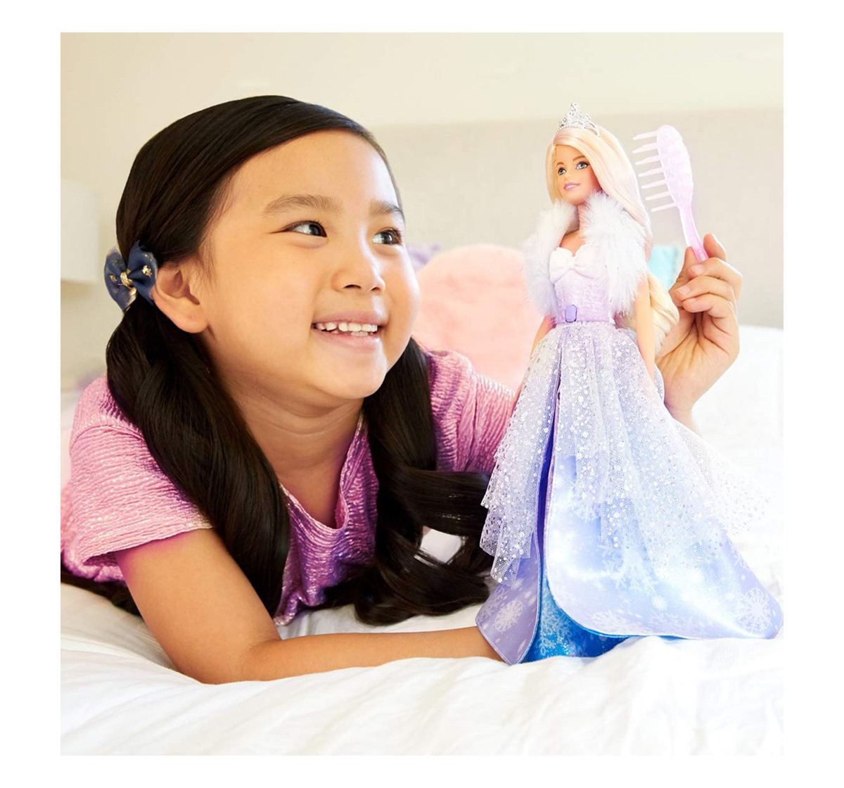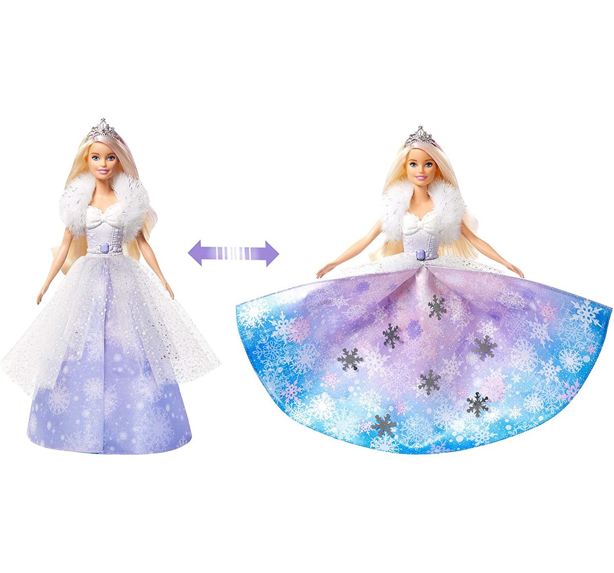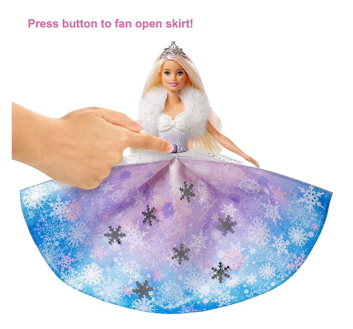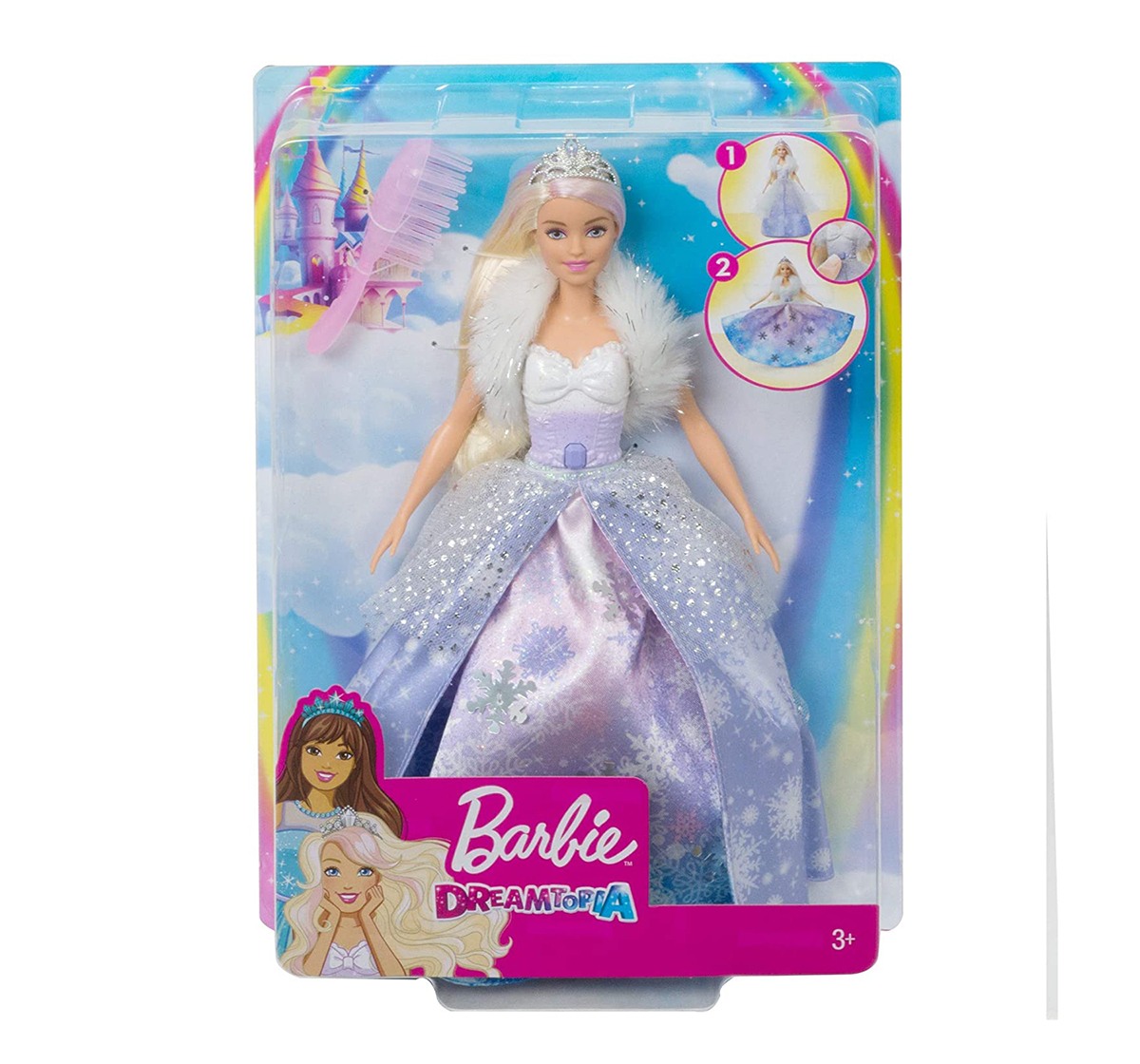 Inspire A Fashion Fairy Tales With Barbie Princess Doll From Barbie Dream Top I A! This Princess Doll Is Dressed For A Royal Occasion In A Layered Gown With A Snowflake Print, Icy-Cool Colours And Lots Of Sparkle. A Glittery Bodice With A White-To-Purple Ombré Effect And Bow Detail Is Complemented By A Soft, Faux Fur Shrug. Press The Button On Barbie Doll'S Bodice For A Wow Moment -- Her Dress Will Fan Open Revealing Silvery Snowflakes And Shades Of Lavender, Blue And Pink! An Icy-Pink Streak In Barbie Doll'S Long, Blonde Hair Adds Fantasy Flair, And A Hairbrush Is Included So Young Imaginations Can Help Her Get Ready For A Royal Adventure.