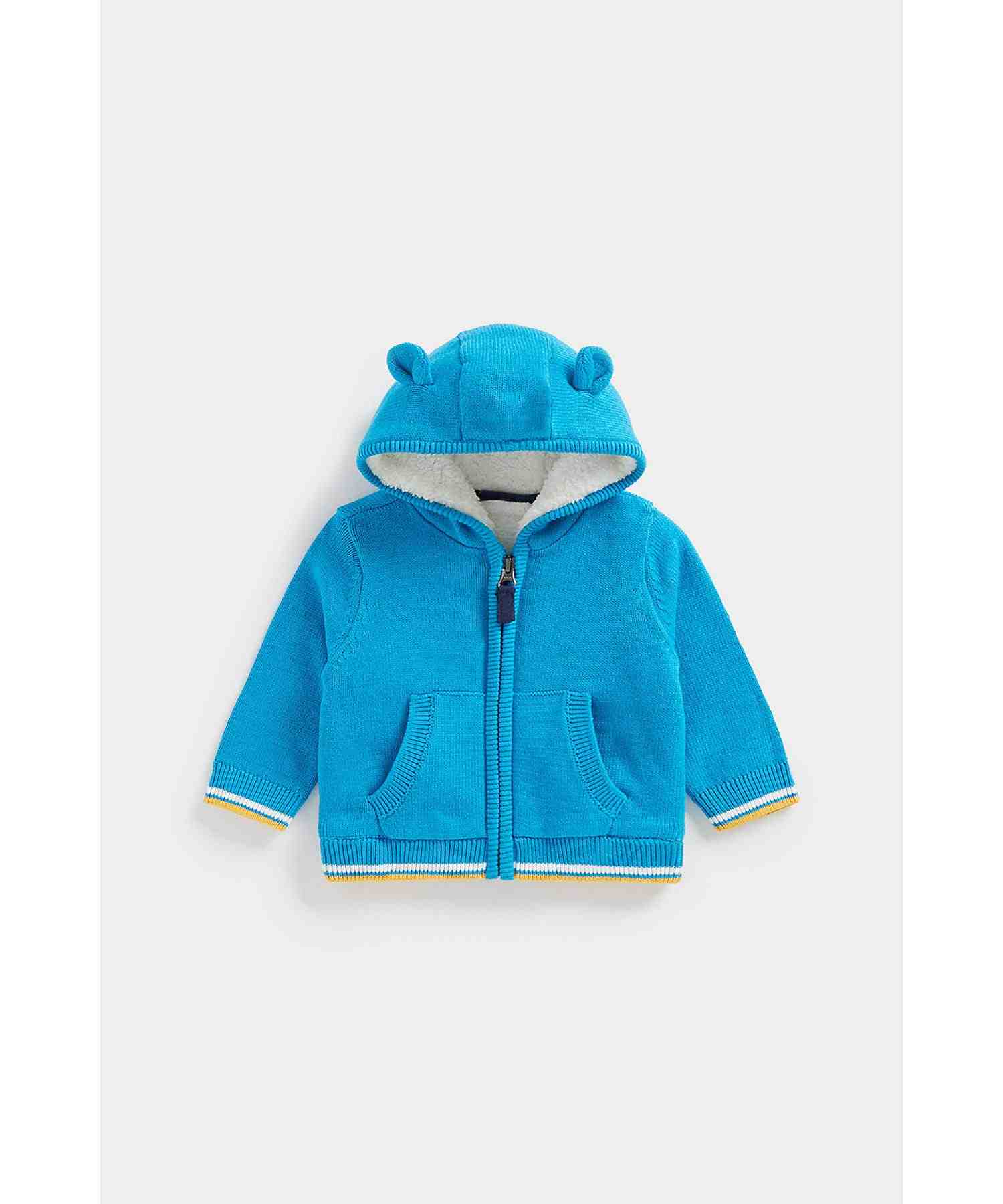 Looking for a cosy, comfy and cute layer for those days when the sun hides away? With zip fastening so it's easy to pop on and off, fluffy, borg lining and a hood with fun little ears, this knitted hoody is set to be the favourite layer for every adventure.