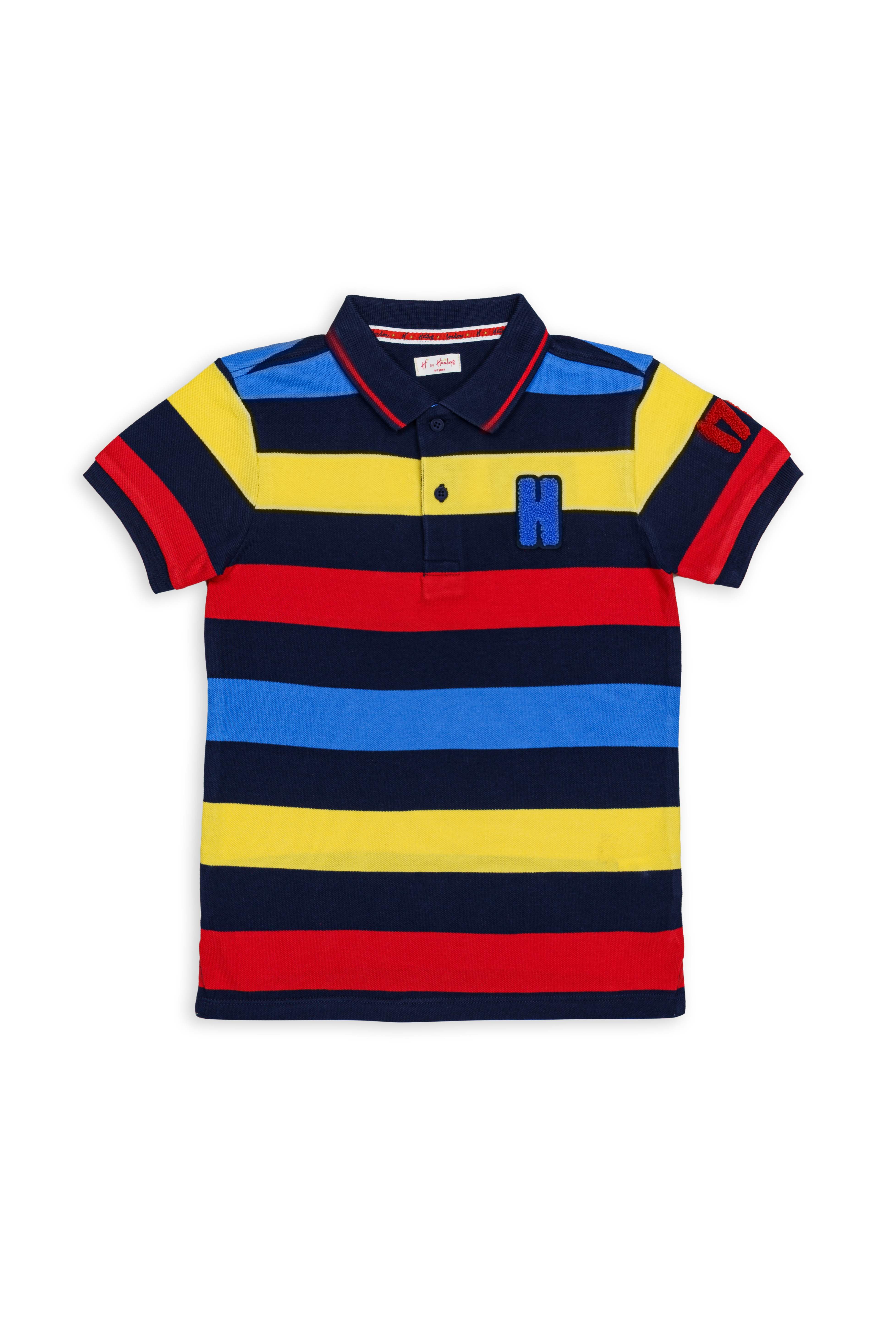 Polo tshirts are your little boy's best pal. The multicolor stripes lets you create smart outfits making them a must have for any wardrobe.This classic fit polo with brand logo provides maximum comfort to your little one & makes it ideal for every occasion. Pair it with joggers & denims for a dapper look. Shop Now!