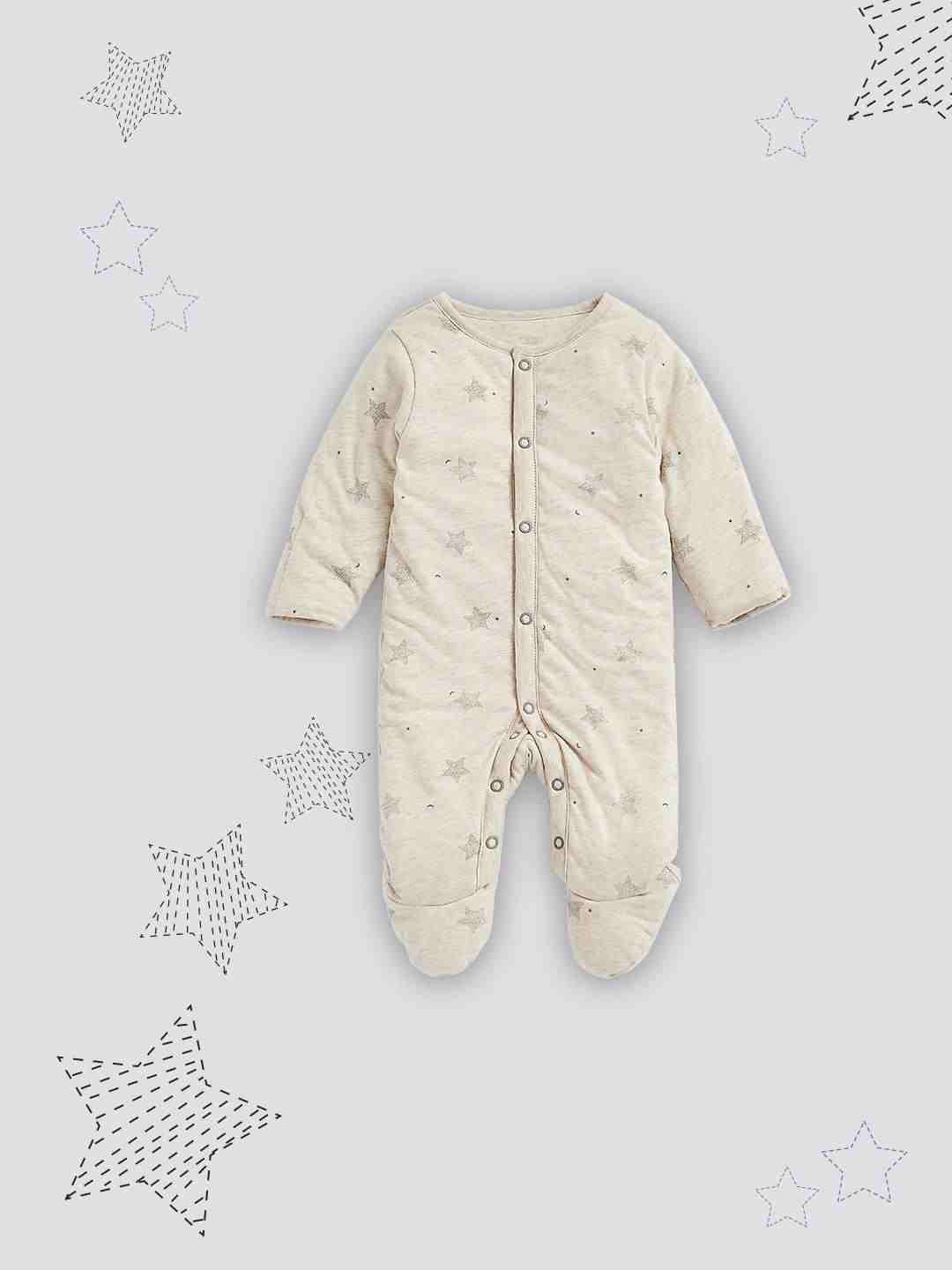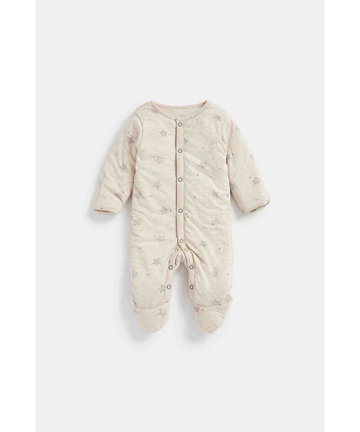 Mothercare Boys Natural Cotton Fabric and Wadded Sleepsuit - Brown