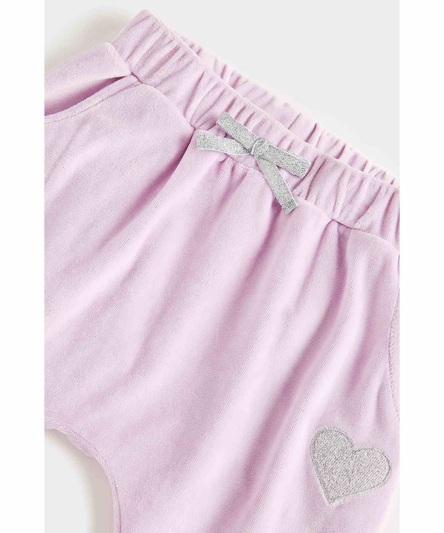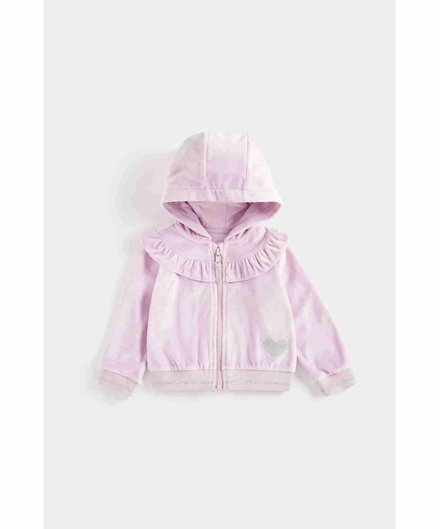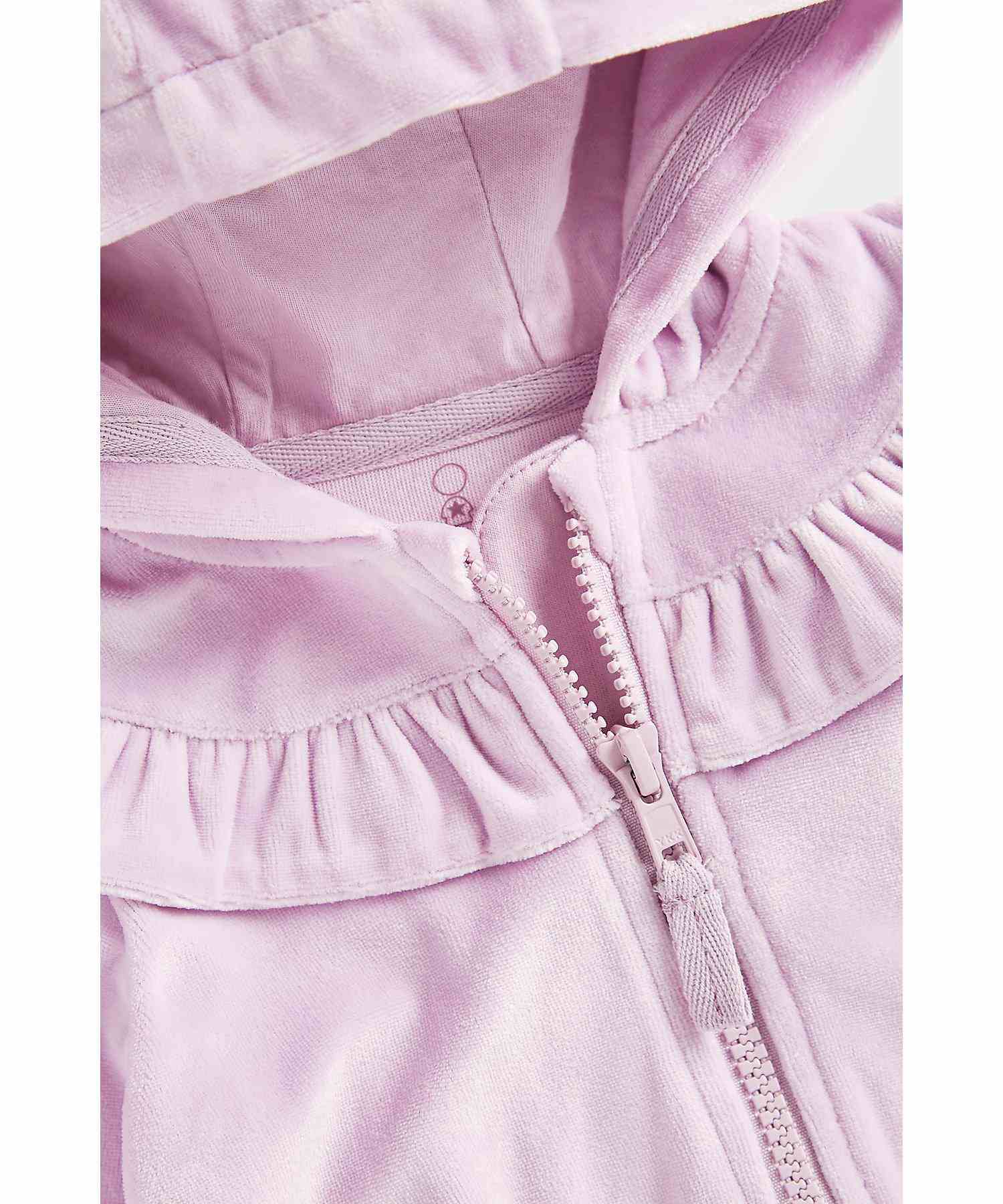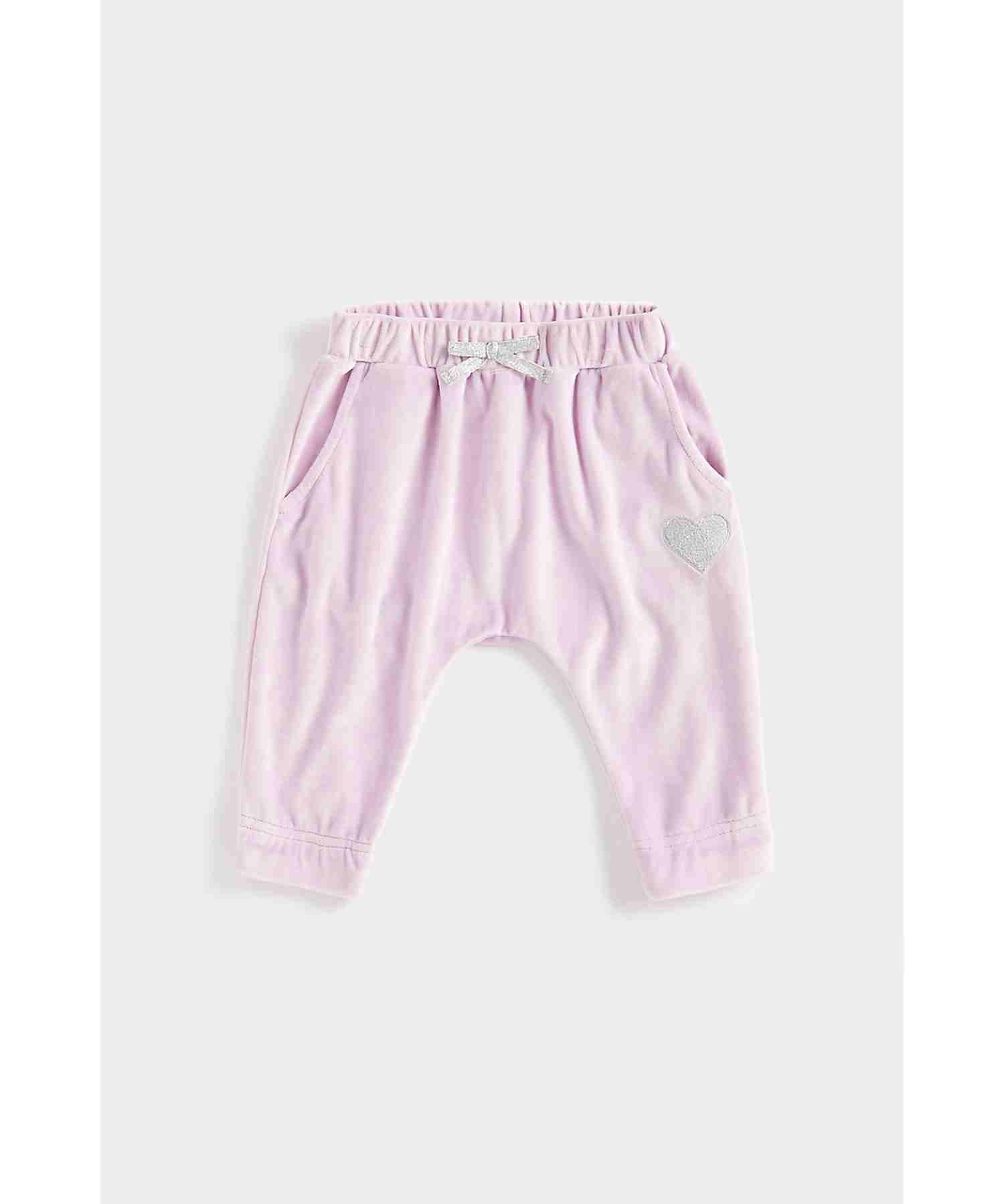Each piece in this jog set had been designed with comfort in mind. Velour fabric keeps it soft and ribbed cuffs ensure a snug fit. Made to match but easy to pair with anything else in your little girl's wardrobe. Finished with embroidered hearts and a little frill.