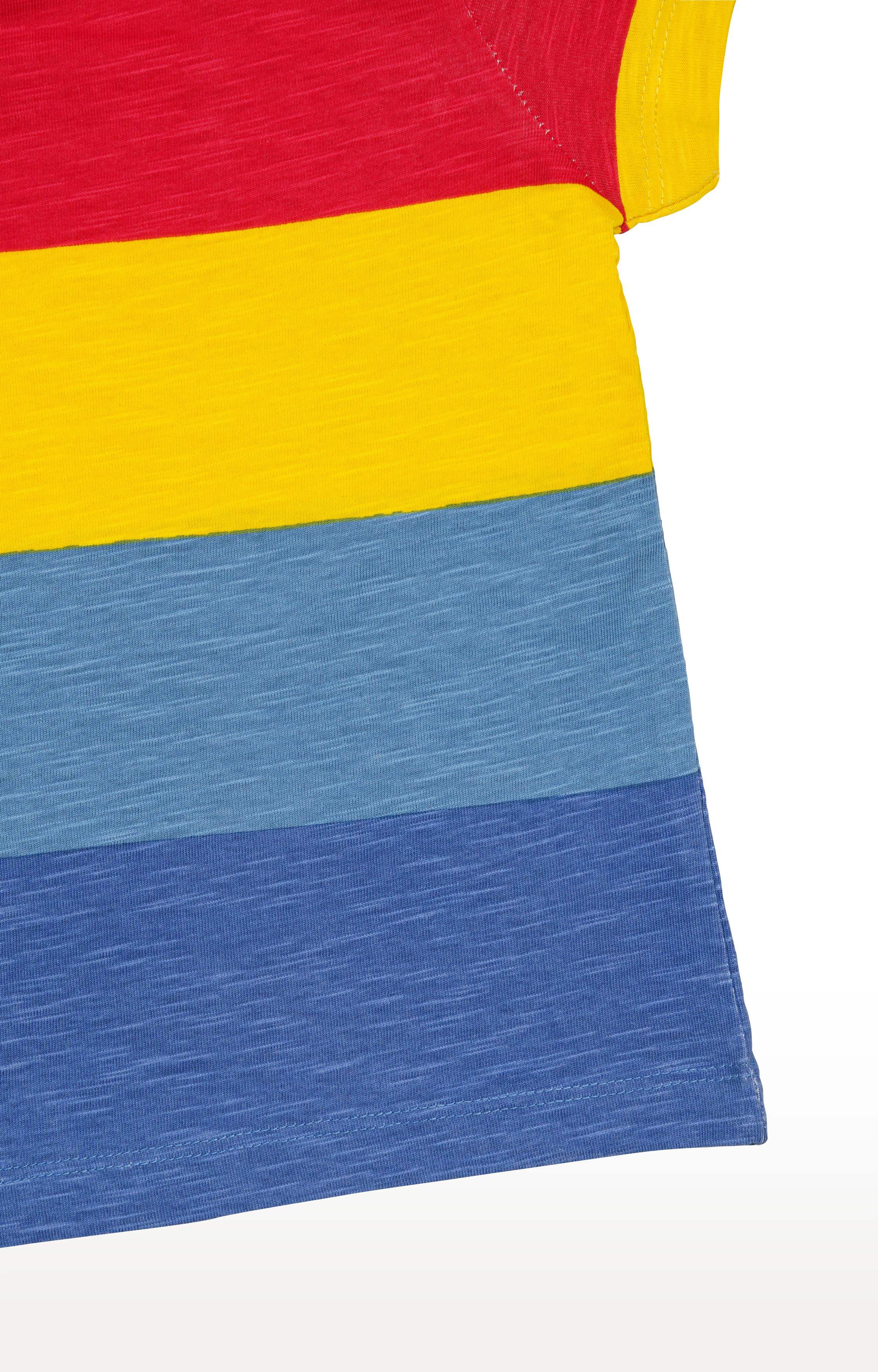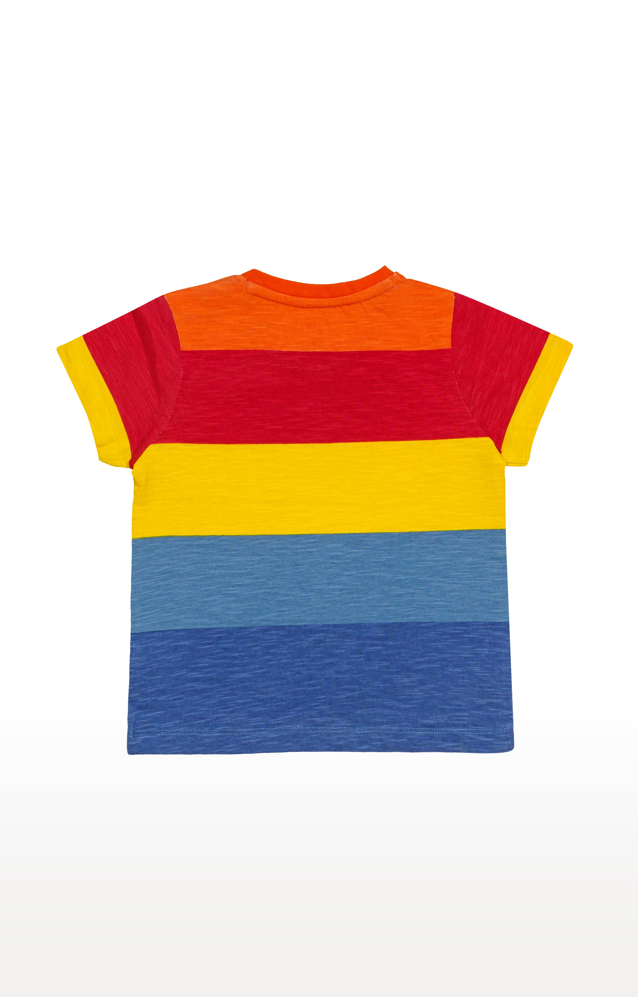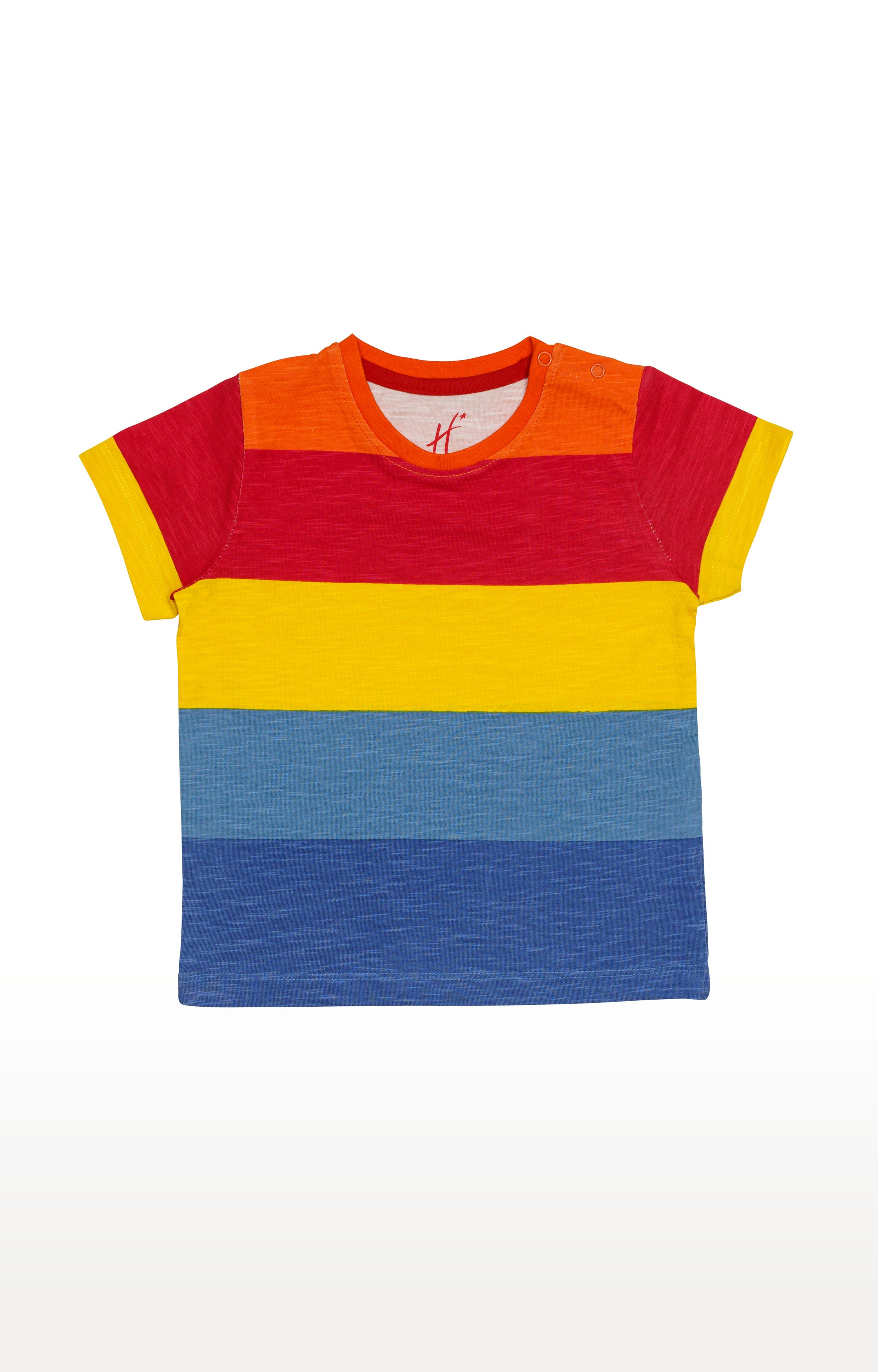 Multicolored block print t-shirts can elevate any look and instantly make any ensemble look stylish. For quick dressing, poppers are affixed to the shoulder of the t-shirt. Soft cotton fabric is used, which is gentle on your baby's skin. To complete the style, pair it with joggers, jeans, or shorts. Buy now!