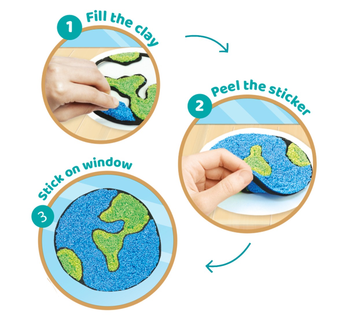 LOOK WHAT I MADE: Unleash your child's creativity with our DIY Art & Craft Kit, designed for making unique foam clay stickers. It's an exciting way for them to craft unique art using foam clay. Simply fill the special Foam Clay into the sticker outlines, peel off the sticker, and stick it onto any smooth surface like windows, mirrors, or tiles. It's that easy for a 3 year old
