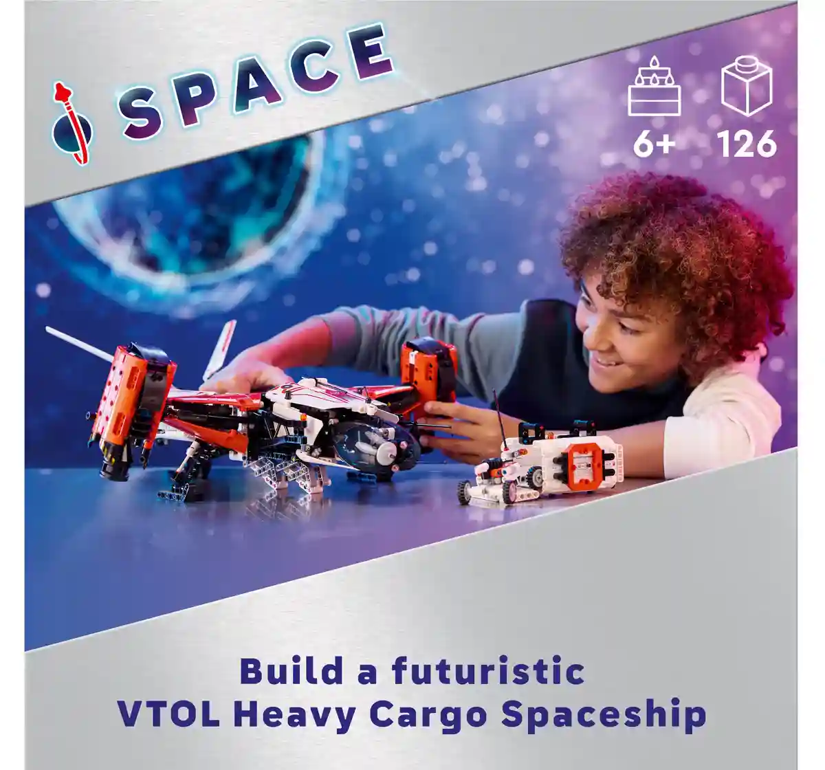 Space enthusiasts can enjoy a build to remember with the LEGO Technic VTOL Heavy Cargo Spaceship LT81 (42181) for kids aged 10+ who love space plane toys. This futuristic spaceship vehicle toy model has lots to ignite curiosity as kids play out exciting cargo transport missions on distant planets.