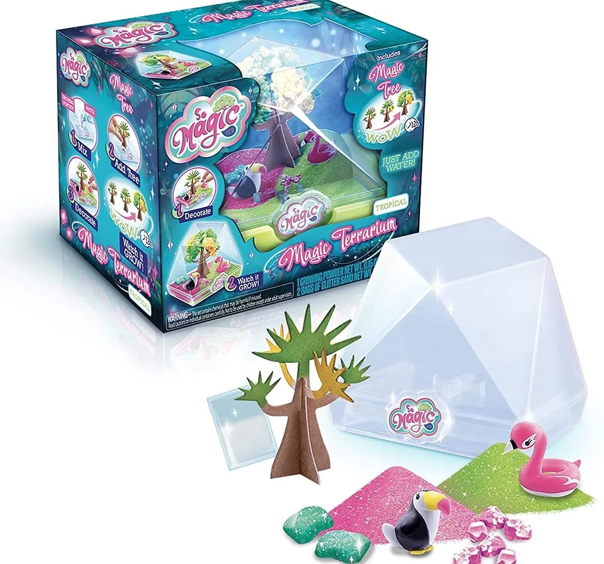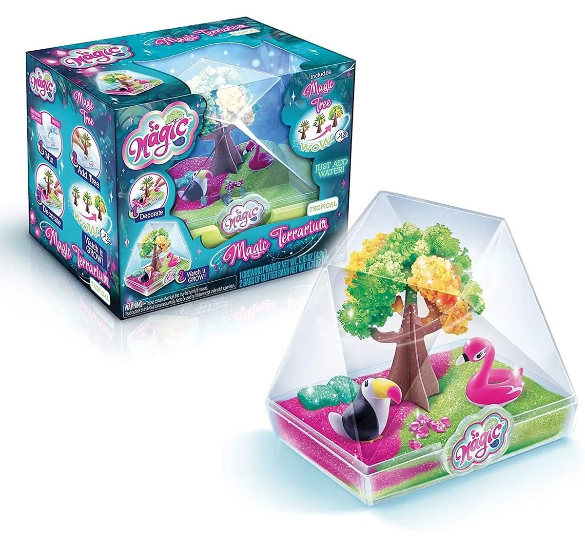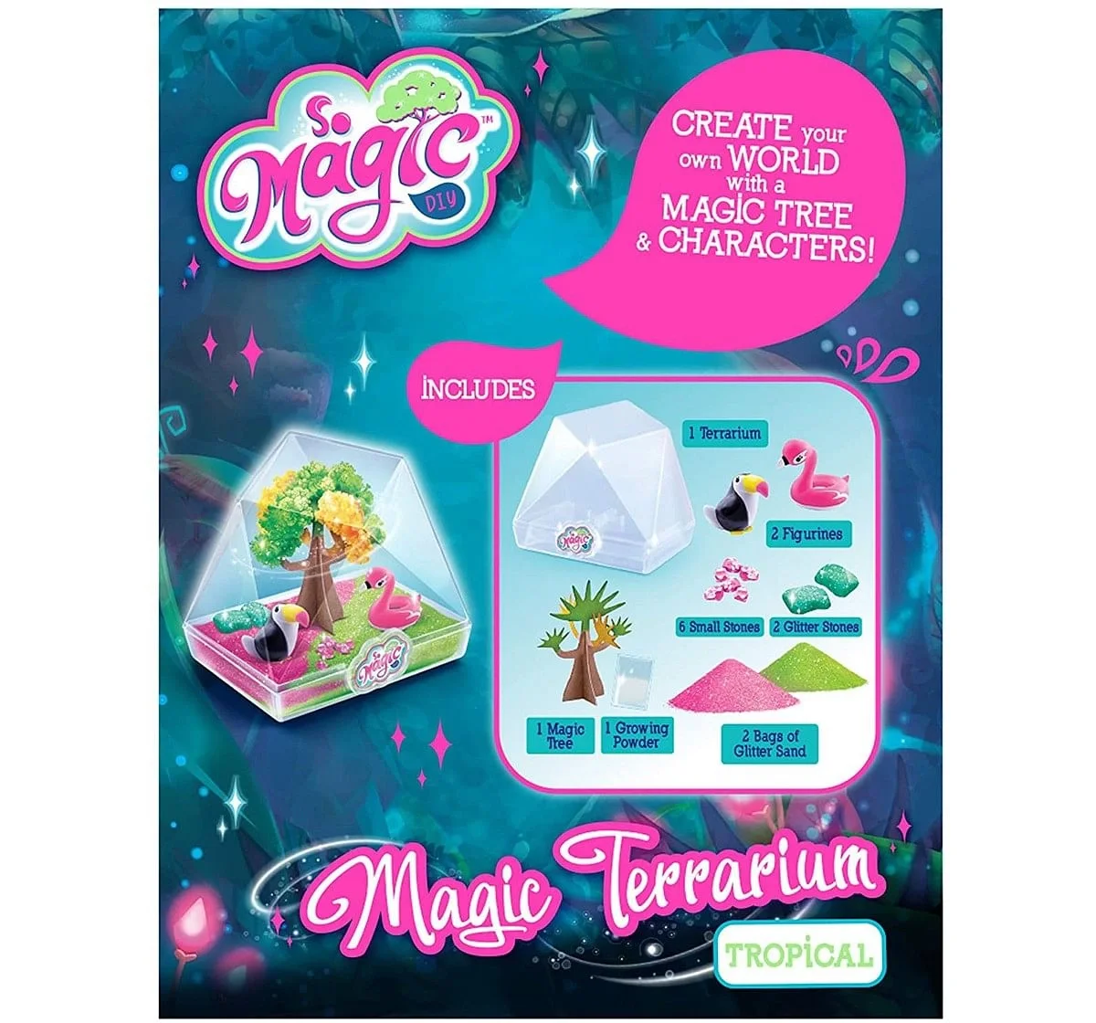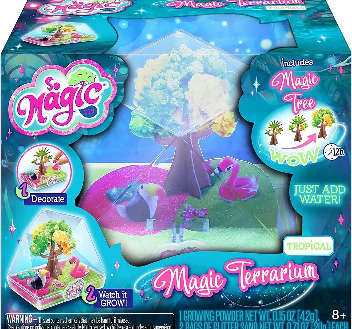 Make Your Own "Tropical" Style Magic Terrarium! It'S A Geo-Shape Terrarium With A Magic Tree! Now You Can Create Your Own Mini World With Magic Tree And Characters! Everything Is Included...Just Add Water! It'S So Easy And Fun To Watch It Grow Like Magic! First Add Your Magic Tree, Growing Powder And Water Into The Terrarium Base. Then Decorate Your Terrarium Mini World With Glitter Sand, Stones, And Adorable Characters. Watch The Tree Grow Colorful Crystal Blossoms! Each Tree Fully Grows Over About 12 Hours. This Glittery Terrarium Is A Perfect Decoration For Any Room In Anytime Of Year! Make And Collect All The Styles! Includes: 1 Plastic Terrarium Container And Base, 1 Paper Magic Tree, 1 Bag Of Growing Power, 2 Bags Of Glitter Sand, 2 Character Figures, 2 Glitter Stone, 6 Small Glitter Stones, And Instructions. So Magic Diy From Canal Toys.