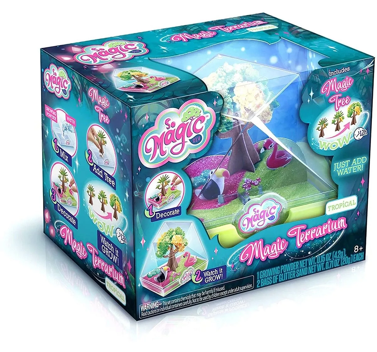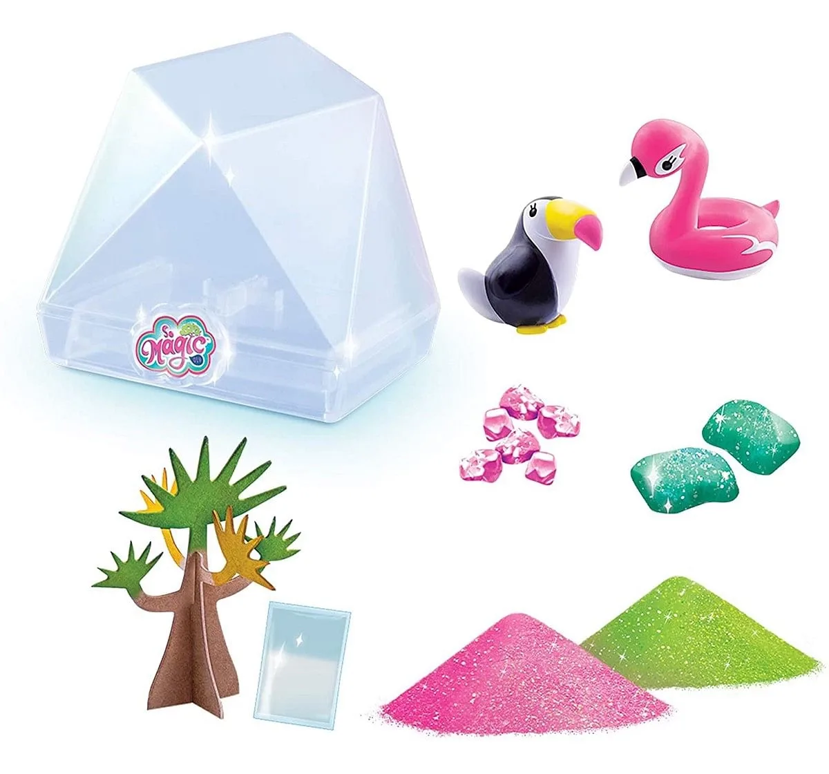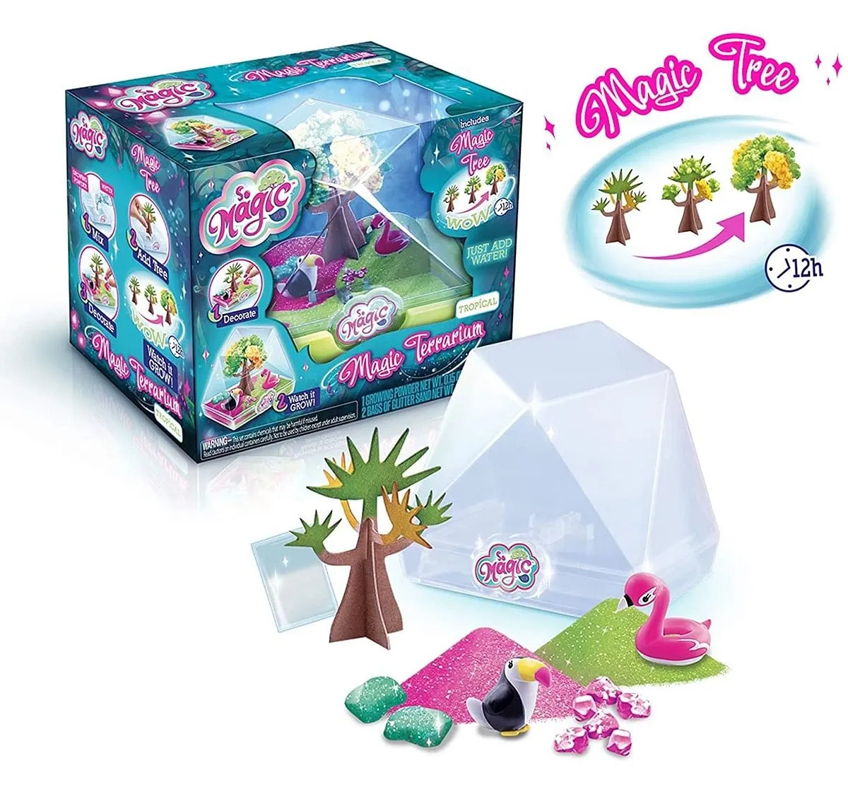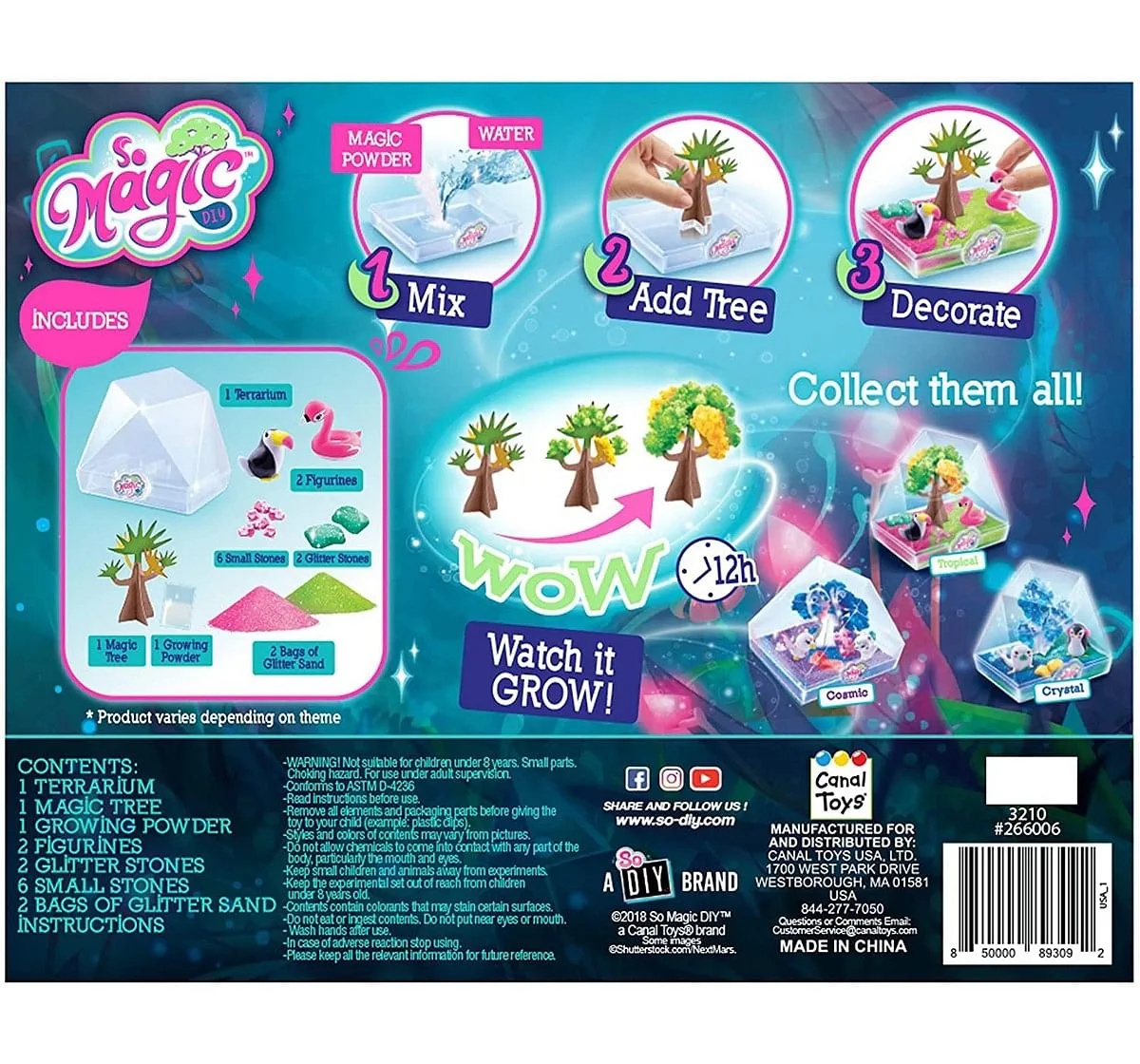 Make Your Own "Tropical" Style Magic Terrarium! It'S A Geo-Shape Terrarium With A Magic Tree! Now You Can Create Your Own Mini World With Magic Tree And Characters! Everything Is Included...Just Add Water! It'S So Easy And Fun To Watch It Grow Like Magic! First Add Your Magic Tree, Growing Powder And Water Into The Terrarium Base. Then Decorate Your Terrarium Mini World With Glitter Sand, Stones, And Adorable Characters. Watch The Tree Grow Colorful Crystal Blossoms! Each Tree Fully Grows Over About 12 Hours. This Glittery Terrarium Is A Perfect Decoration For Any Room In Anytime Of Year! Make And Collect All The Styles! Includes: 1 Plastic Terrarium Container And Base, 1 Paper Magic Tree, 1 Bag Of Growing Power, 2 Bags Of Glitter Sand, 2 Character Figures, 2 Glitter Stone, 6 Small Glitter Stones, And Instructions. So Magic Diy From Canal Toys.