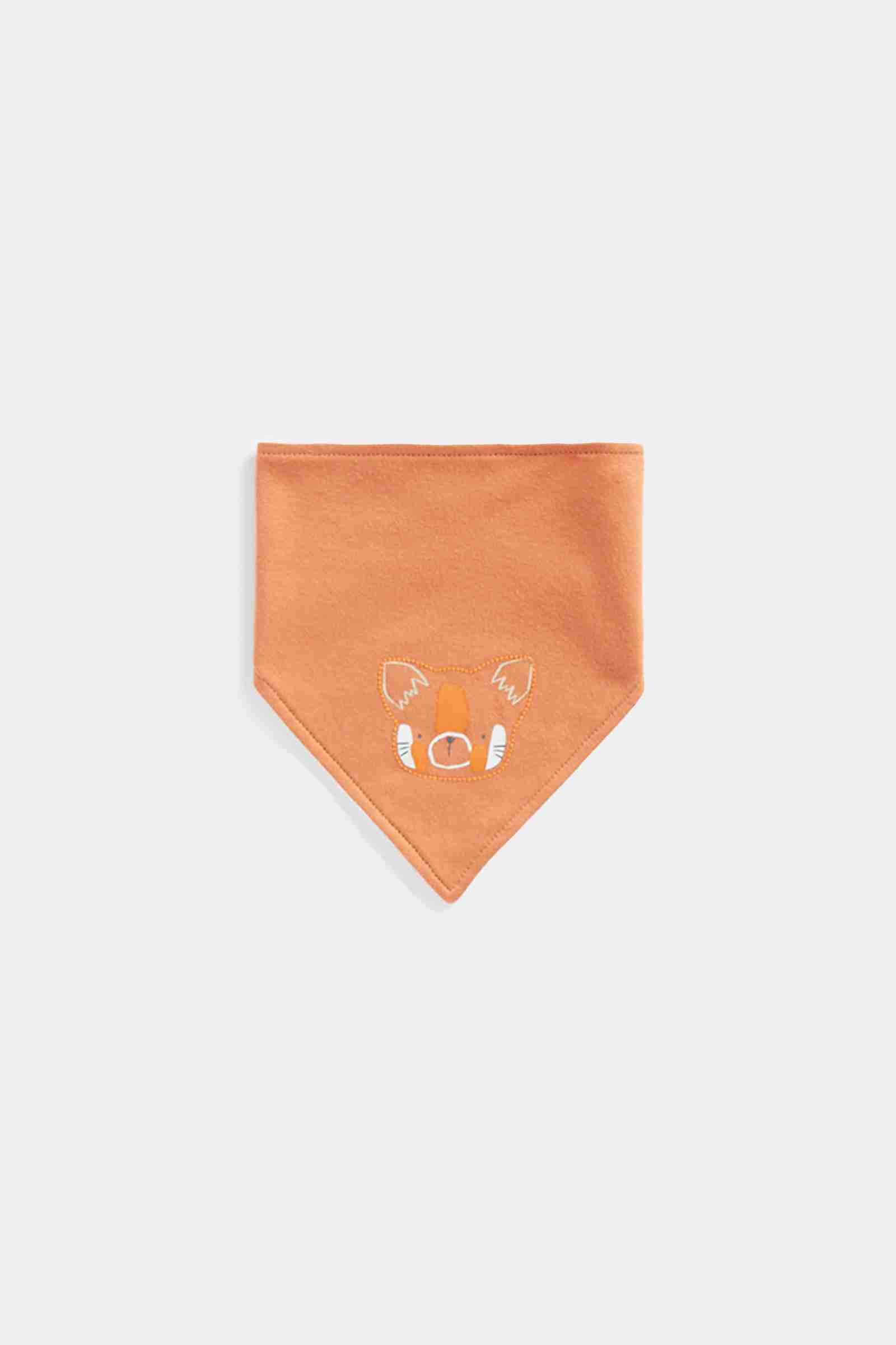 - Bib with towelling backing and popper fastening