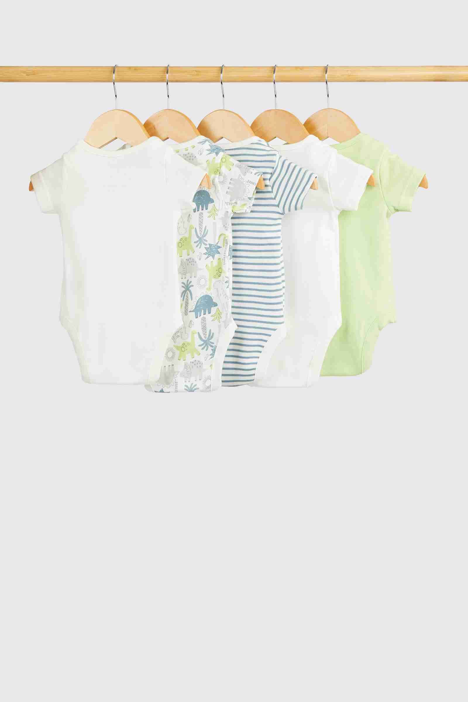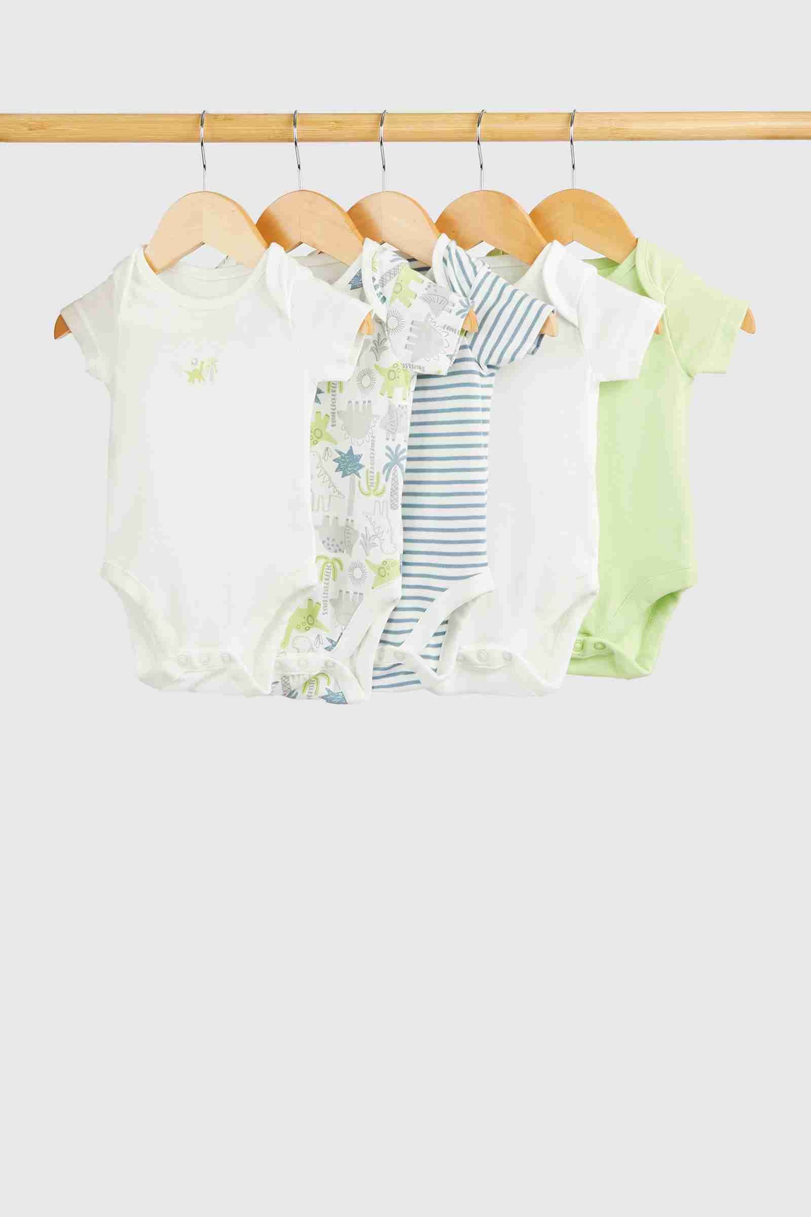 Mothercare Boys Half Sleeves Bodysuit - Pack of 5 - White