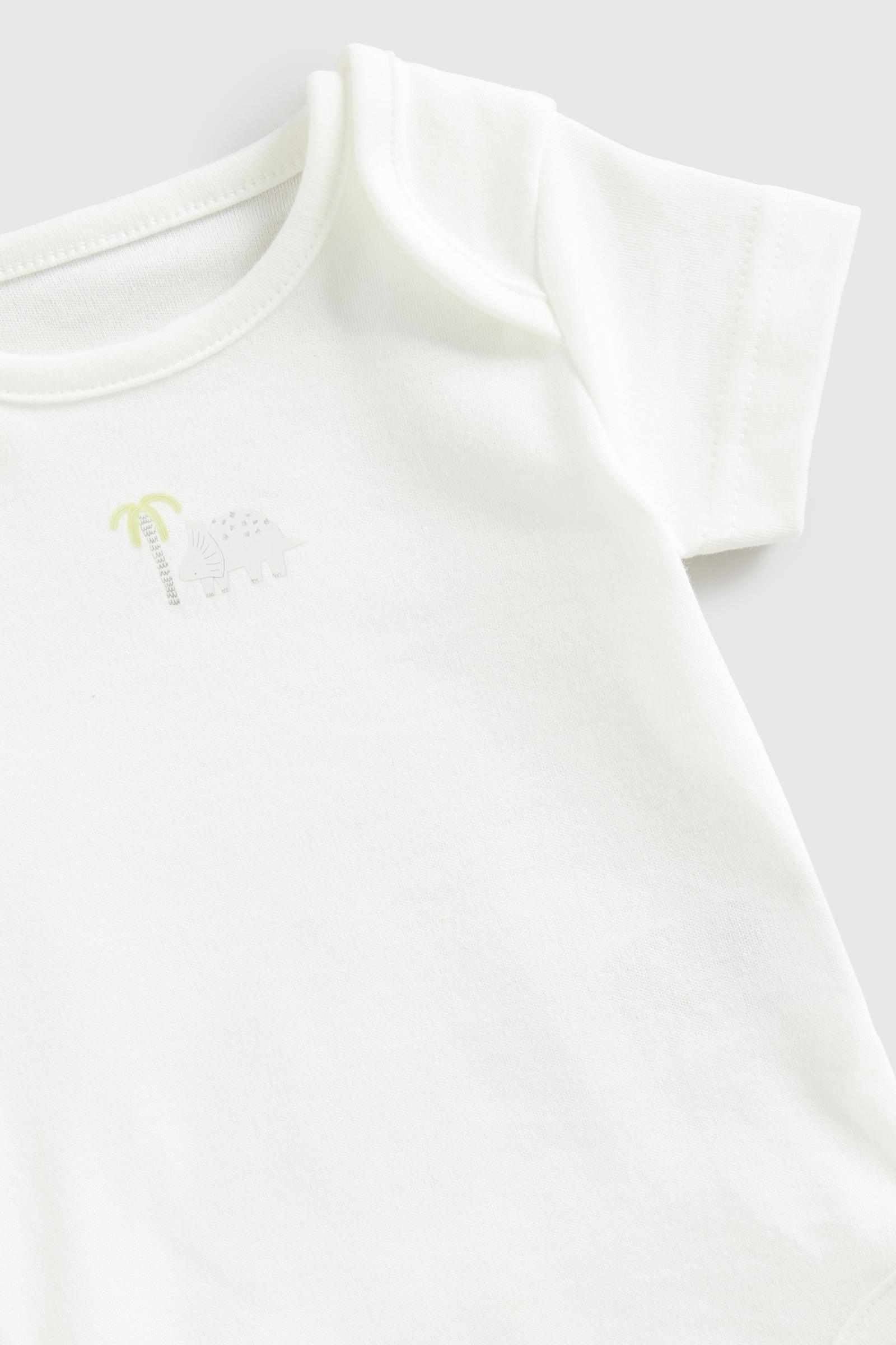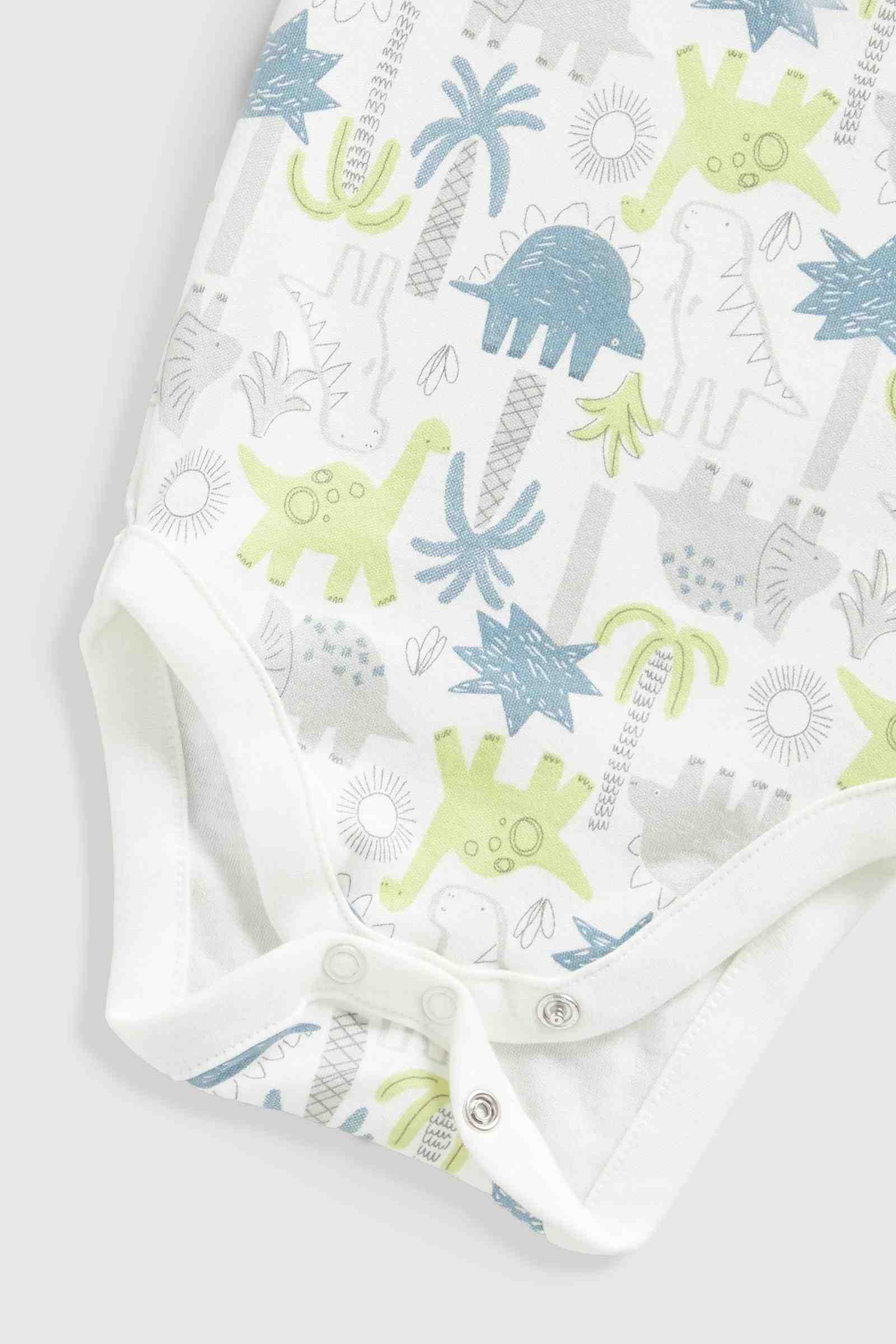 For the littlest dinosaur fans. Made from soft-on-skin cotton, these bodysuits are the perfect layers to pop on under any little outfit. Designed for easy dressing and nappy changing, each bodysuit in this bumper pack features a different, yet equally adorable print. Responsibly sourced cotton is grown with all-natural growing methods, using less water to produce, and using no harmful chemicals. Safer for their skin and helping protect their world.