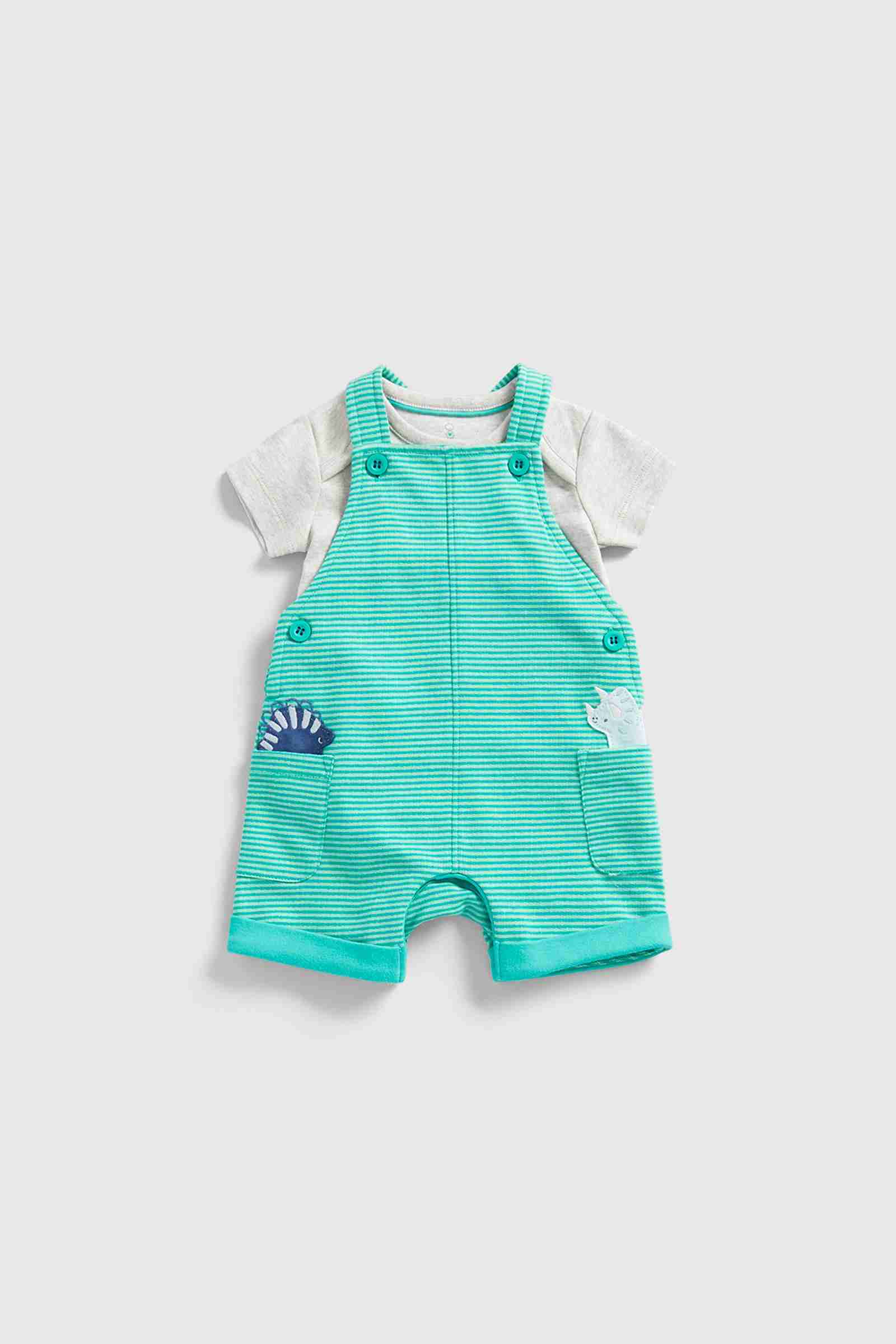 - Mothercare Boys Half Sleeves Dungaree Set - Green