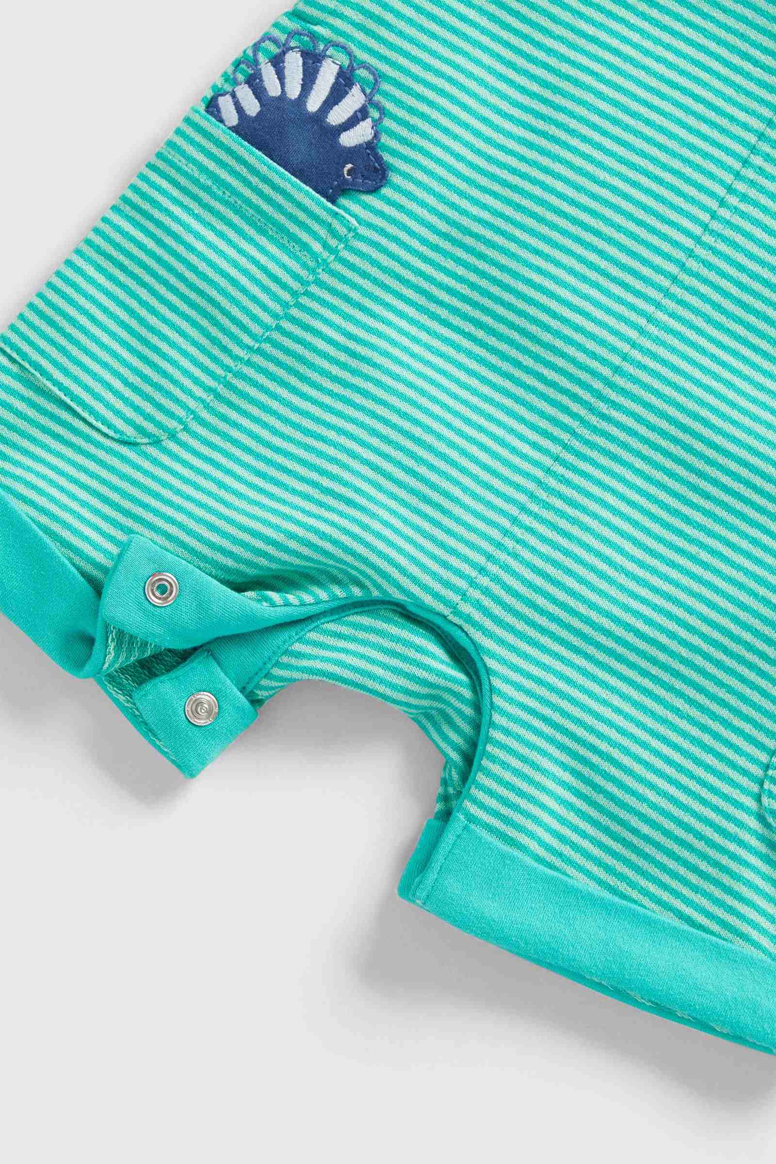 We've made this outfit cute, but made sure it's comfy too! Both the grey marl bodysuit and striped bib shorts are made from soft-on-skin cotton with plenty of fastenings for easy dressing and nappy changes. We've popped two little dinosaur characters into the pockets to join in today's adventure.