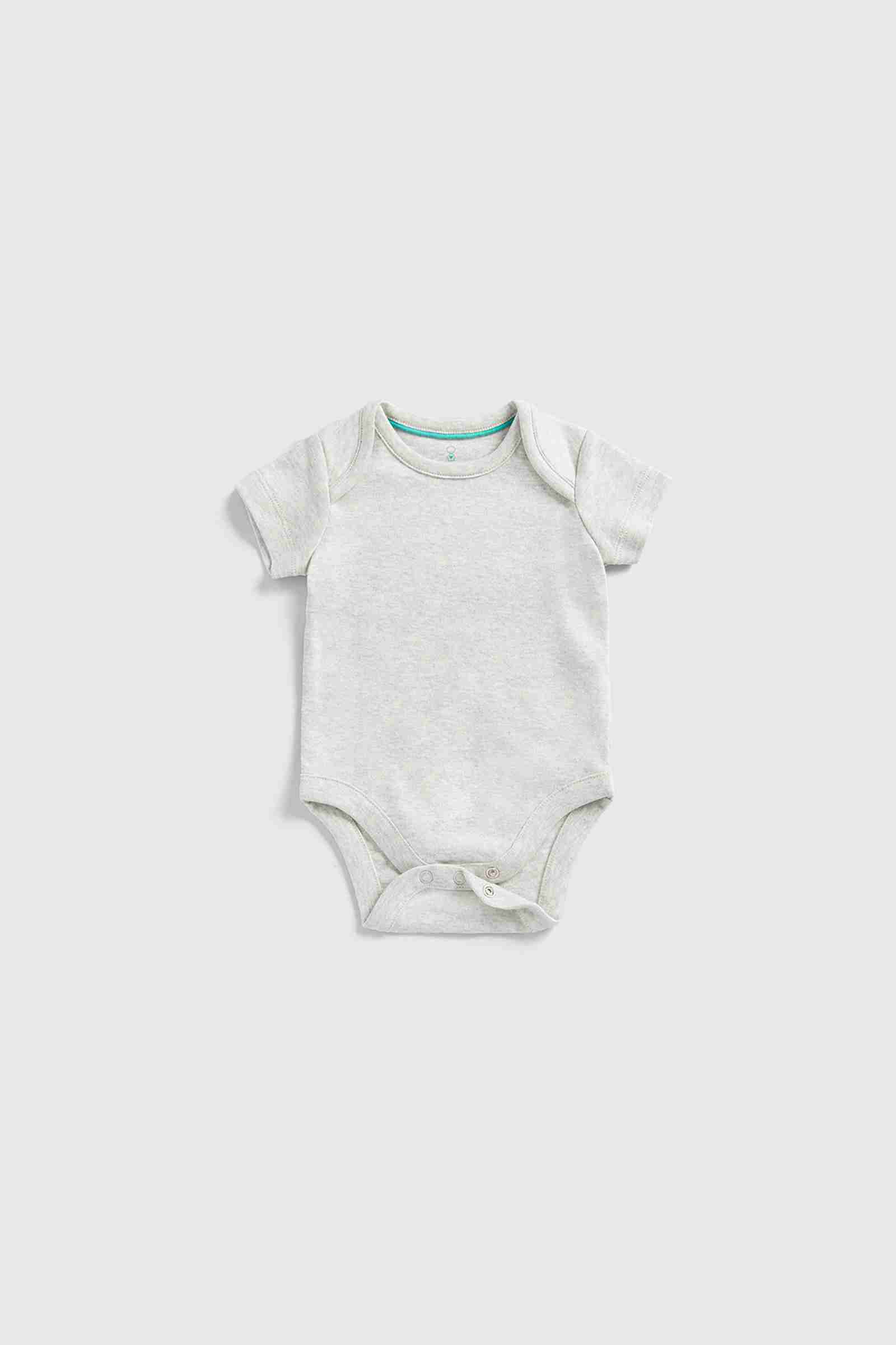 - Short-sleeved bodysuit with envelope neck and popper fastenings