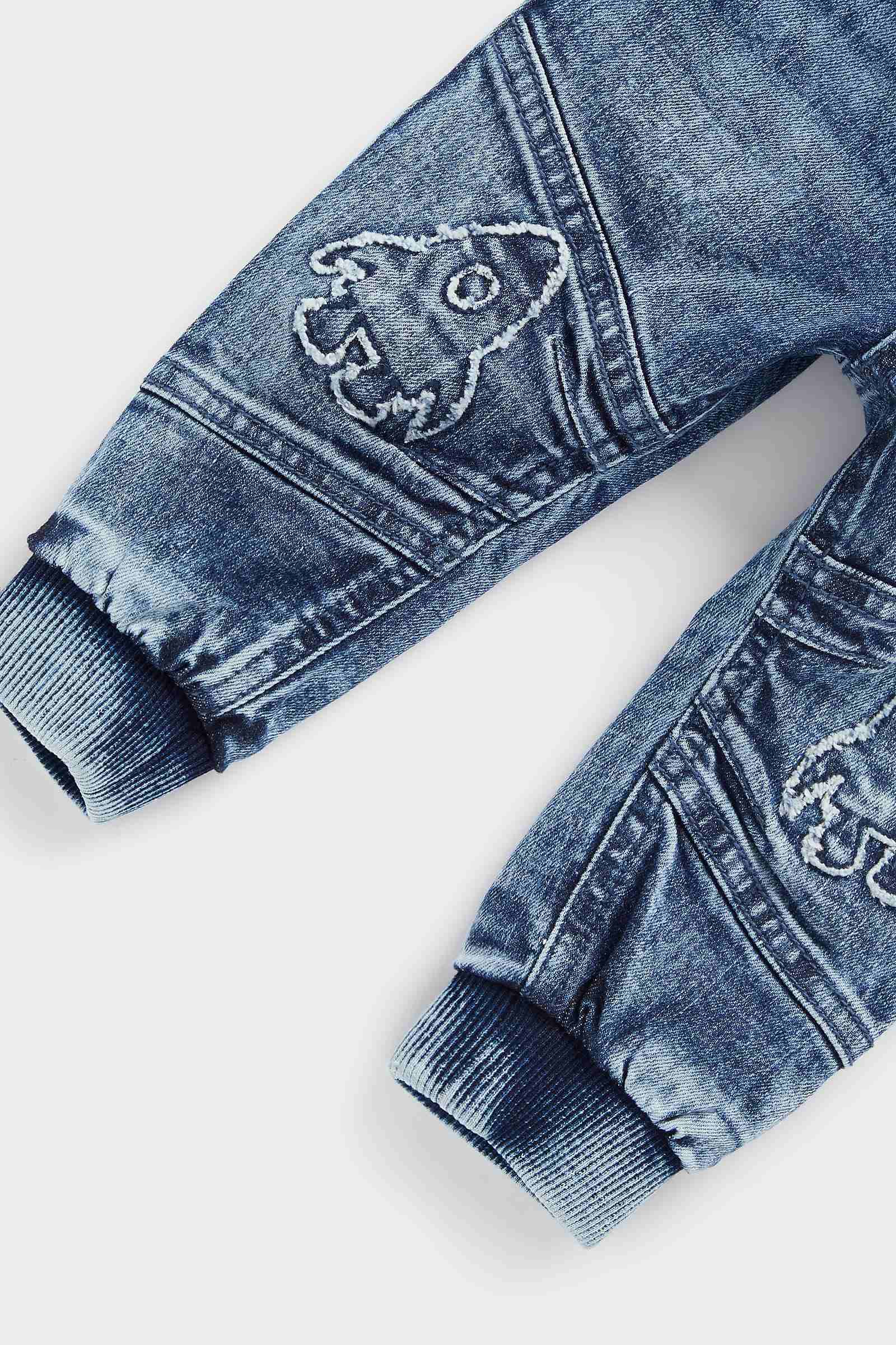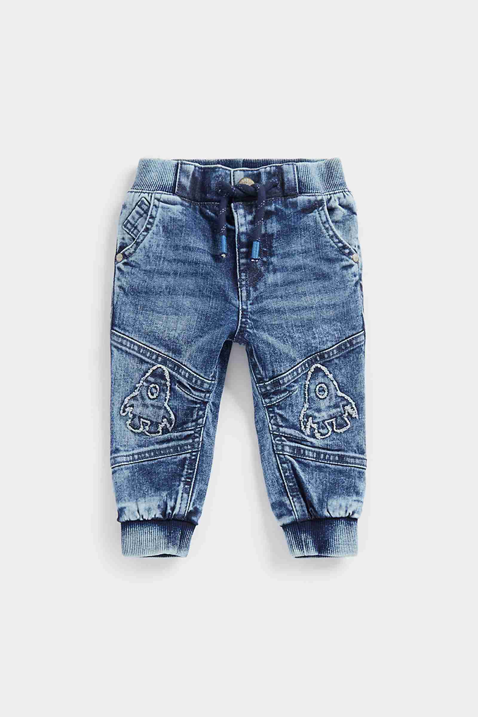 Designed for mini explorers, these jogger jeans are made from soft, yet durable cotton denim with a little added stretch to keep up with busy days. The ribbed waist and popper fastening ensure they'll be dressed at lightening speed.