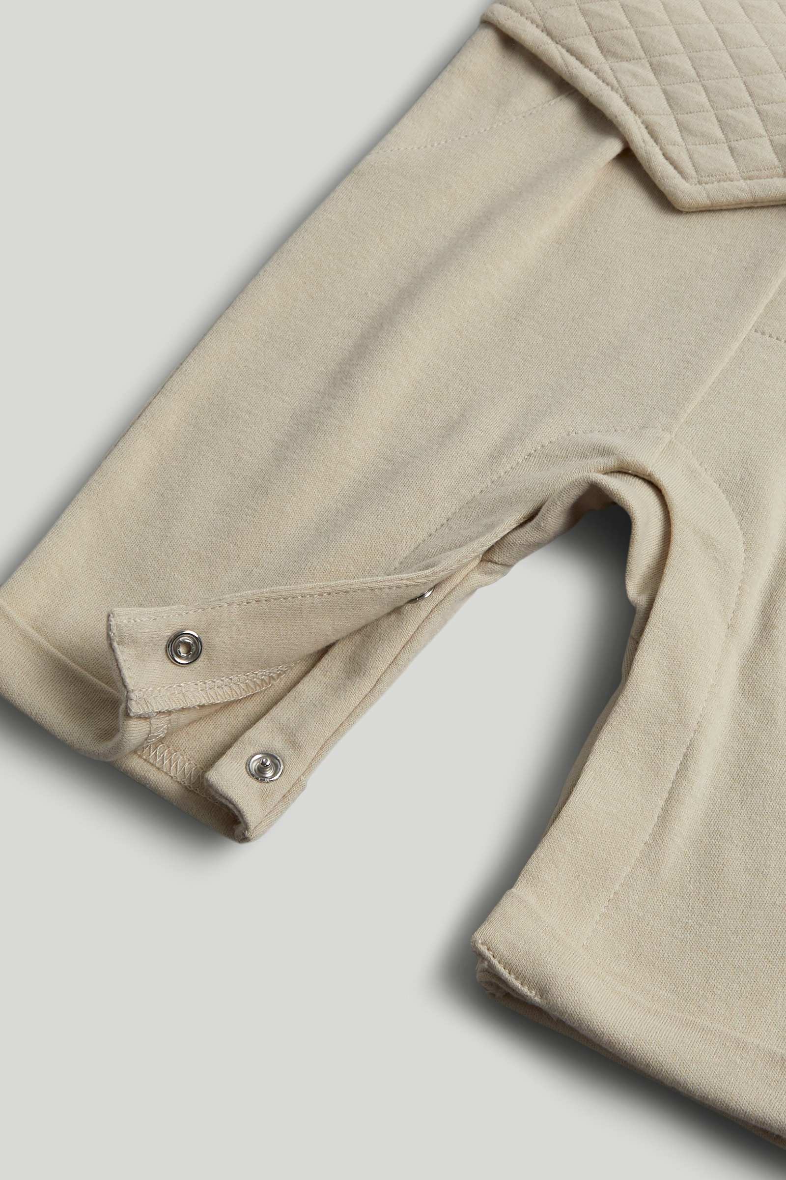Effortlessly smart, this all-in-one outfit combines the look of layered separates with the ease of a single piece. Made from soft, breathable cotton for all-day comfort, it features the smart styling of trousers, a shirt, a quilted waistcoat, and a bow tieperfectly assembled in one thoughtful design. Popper and button fastenings ensure quick changes.