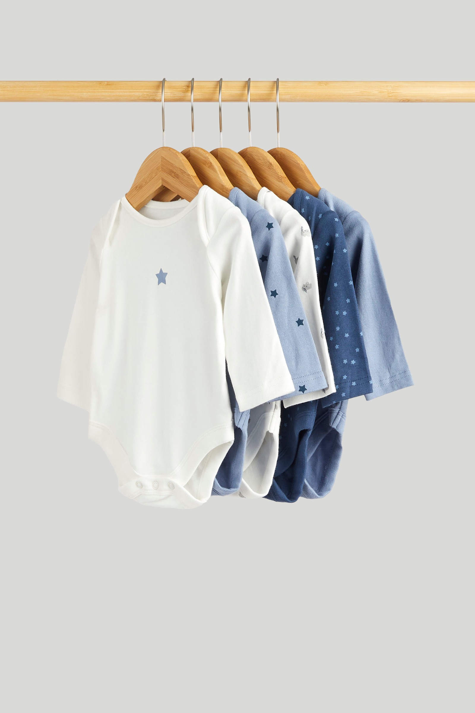 - Mothercare Essentials Boys Printed Long Sleeves Bodysuit - Pack of 5 - Blue