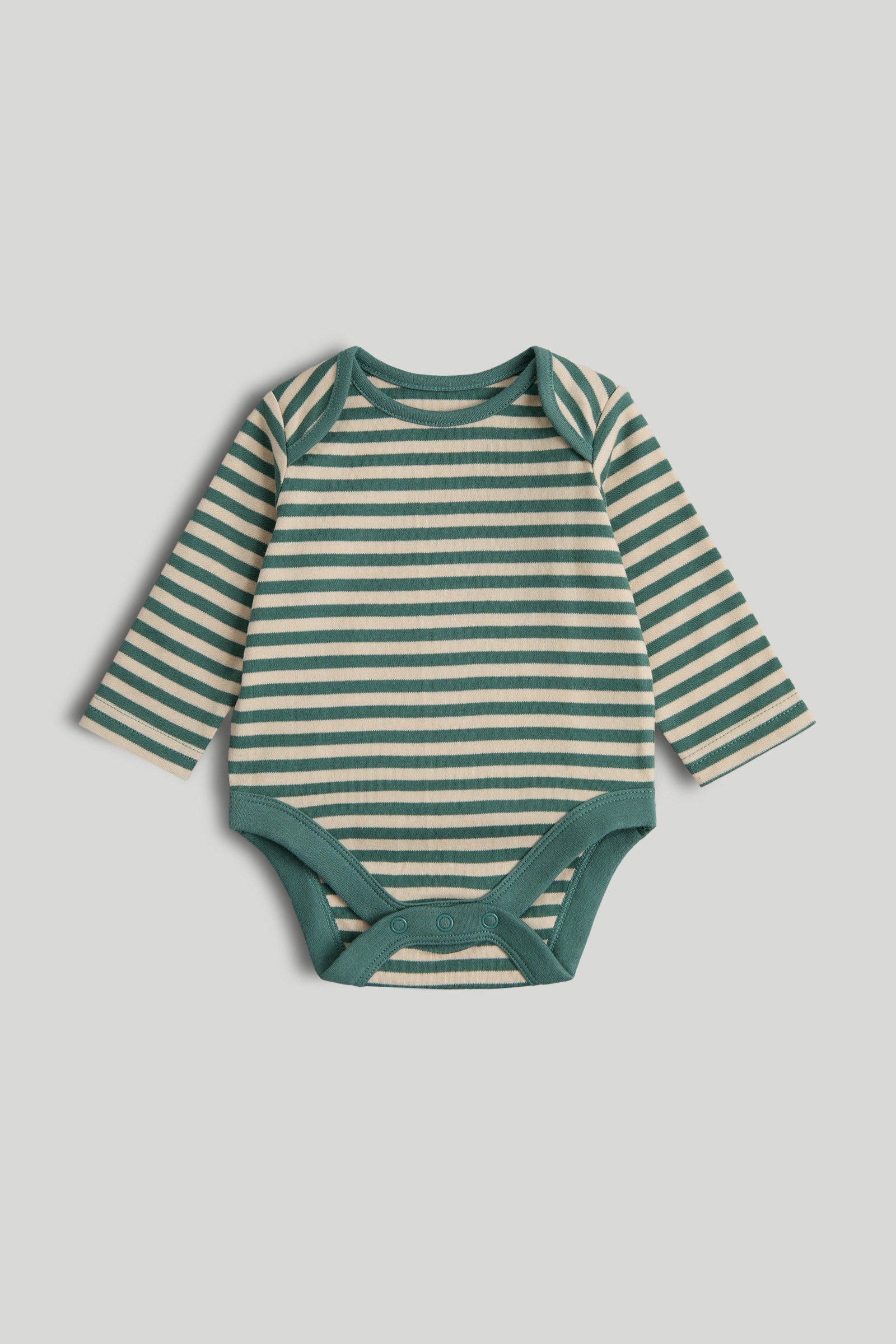 Five comfortable cotton bodysuits with long sleeves for colder days. Each all-in-one bodysuit in this set features an envelope neckline and popper fastenings to make dressing and nappy changing easier.