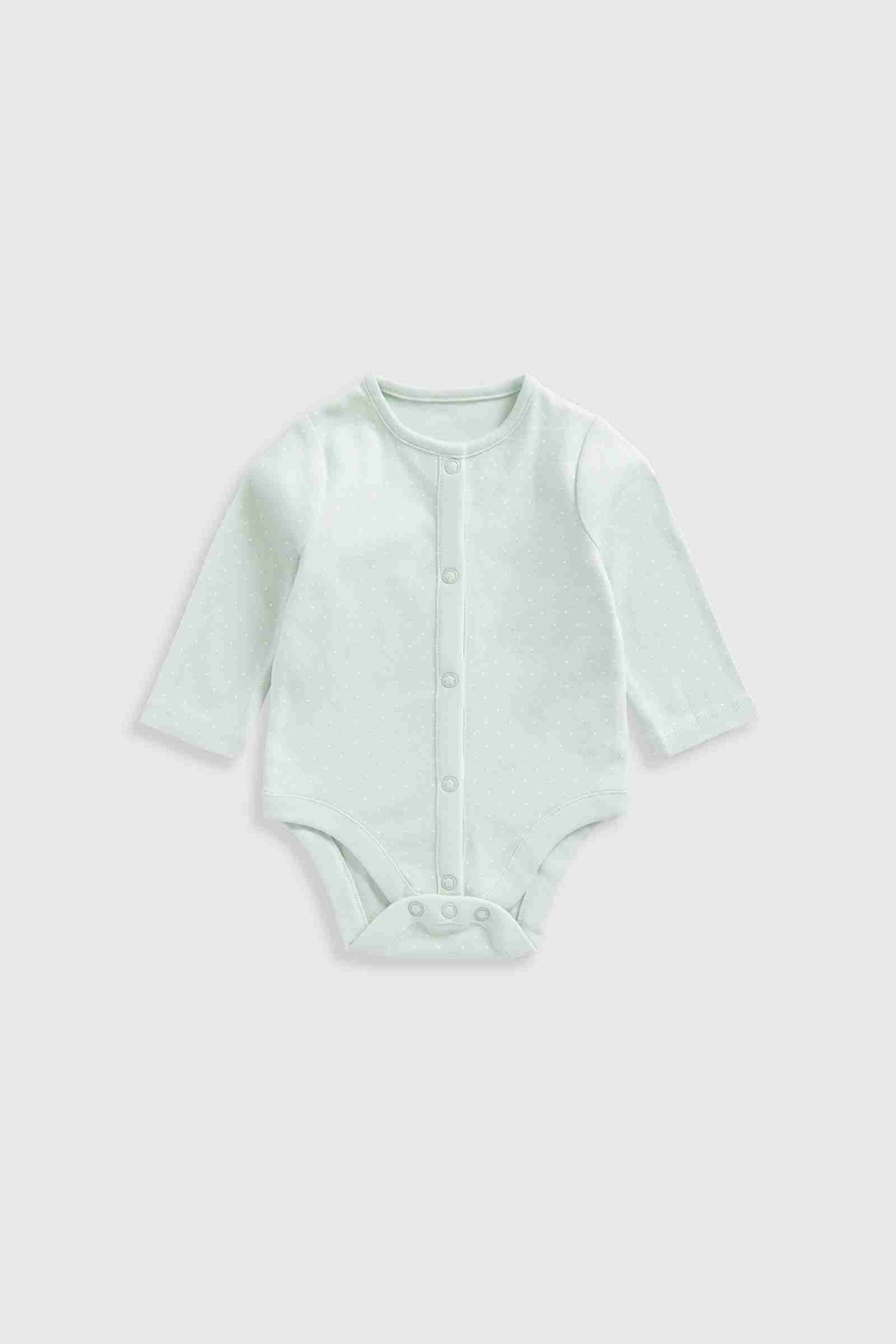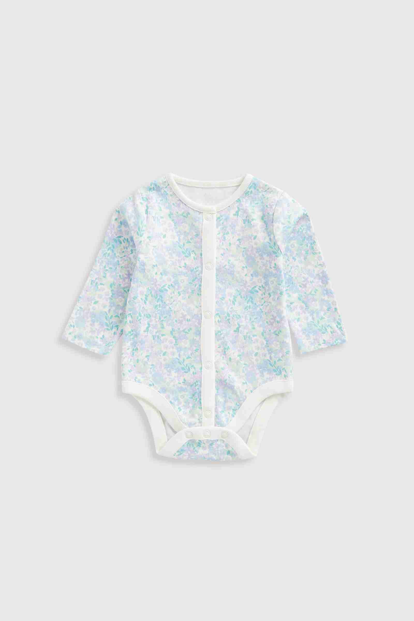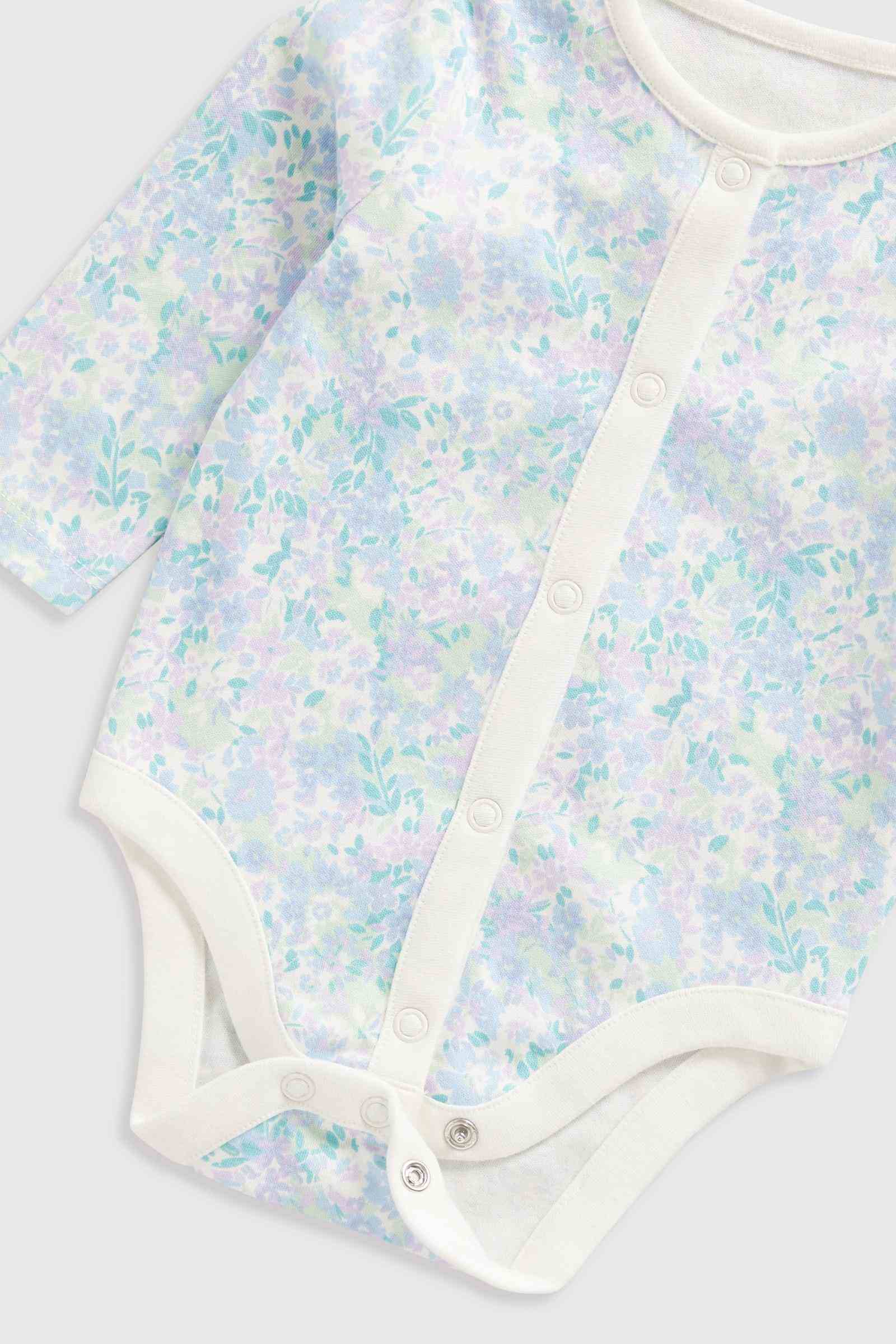 - Mothercare Essentials Girls Floral Popper 100% Cotton Long Sleeves Bodysuits - Pack of 3 - Green