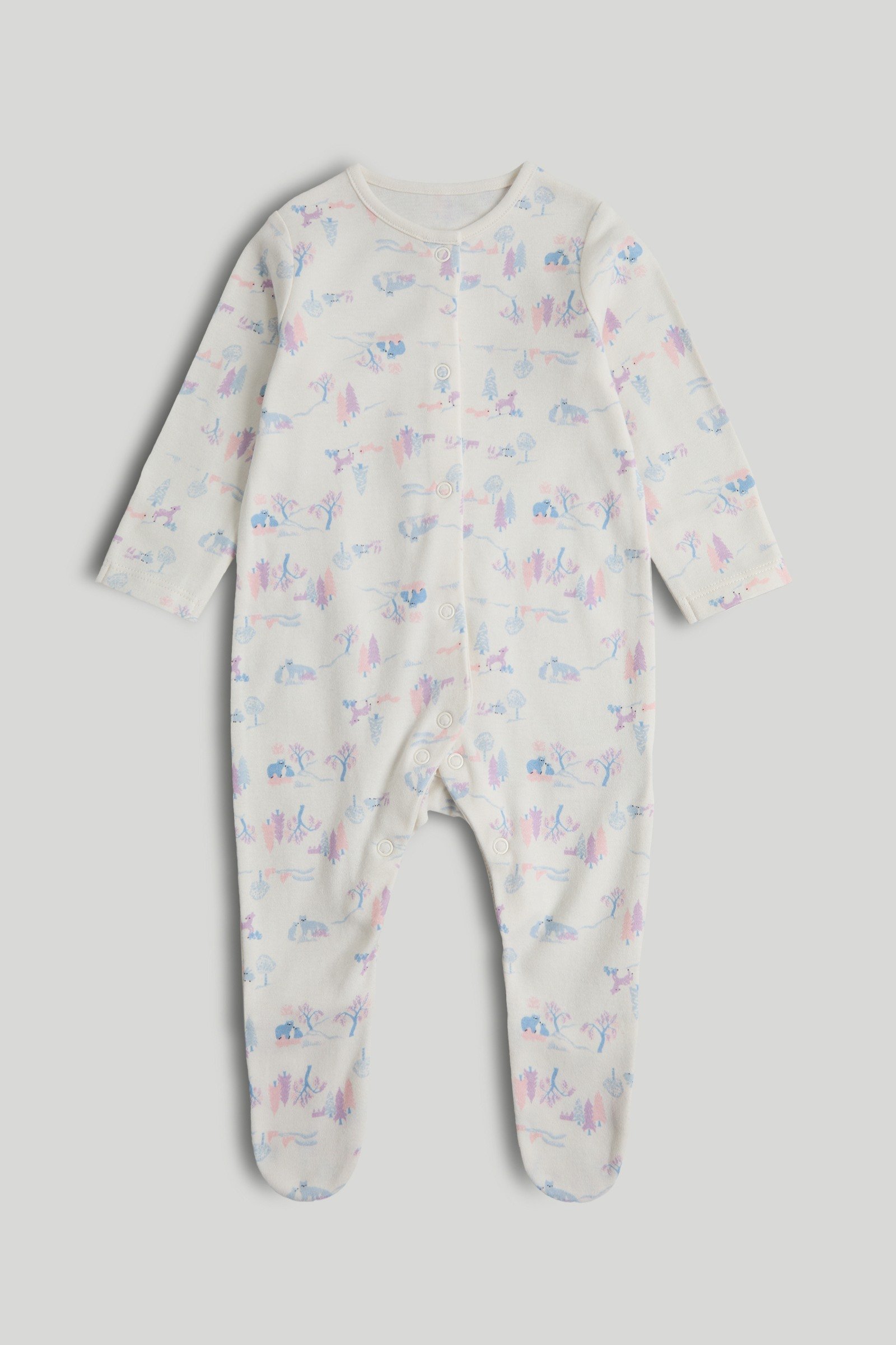- Mothercare Essentials Girls Printed Full Sleeves Sleepsuits - Pack of 3 - Navy