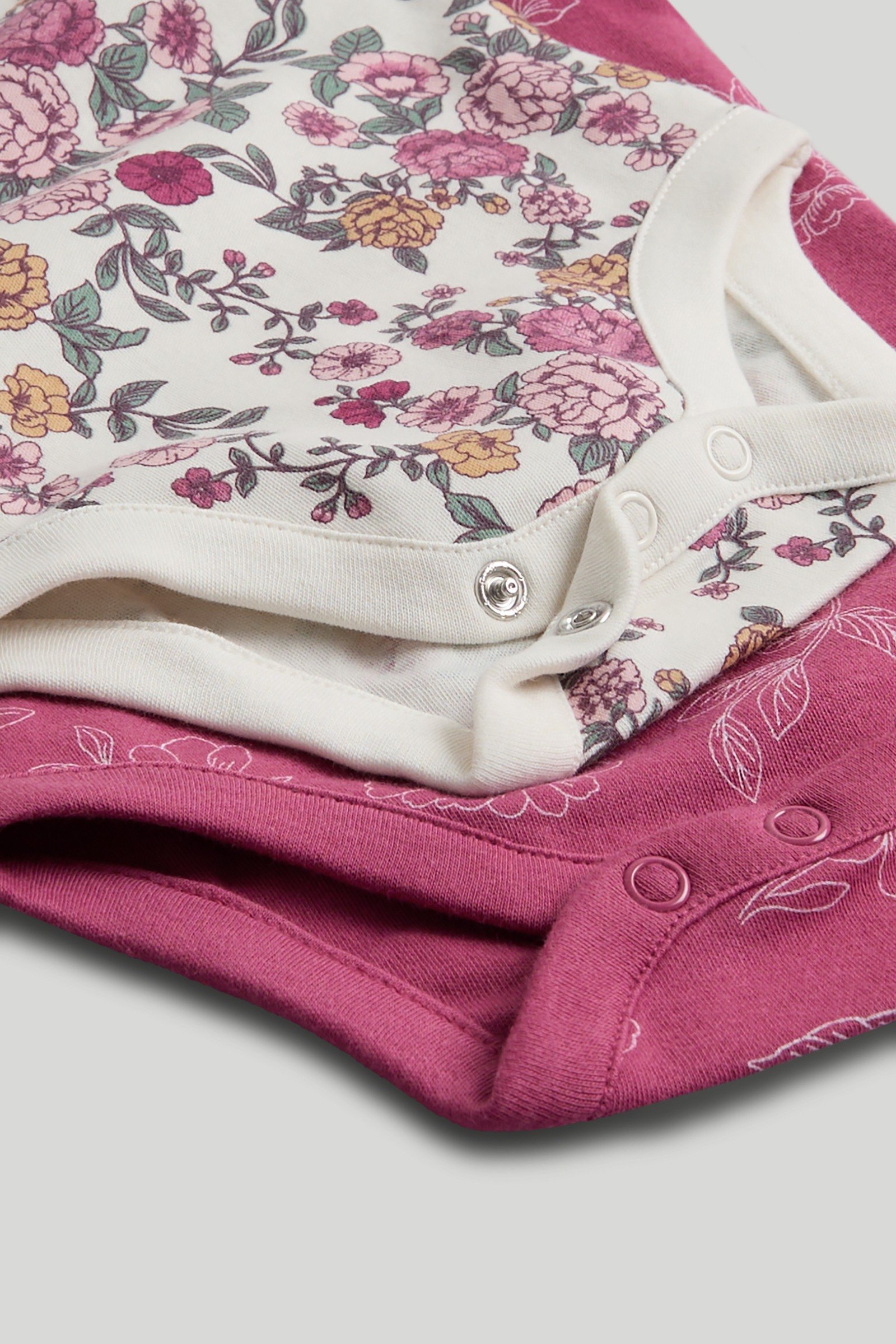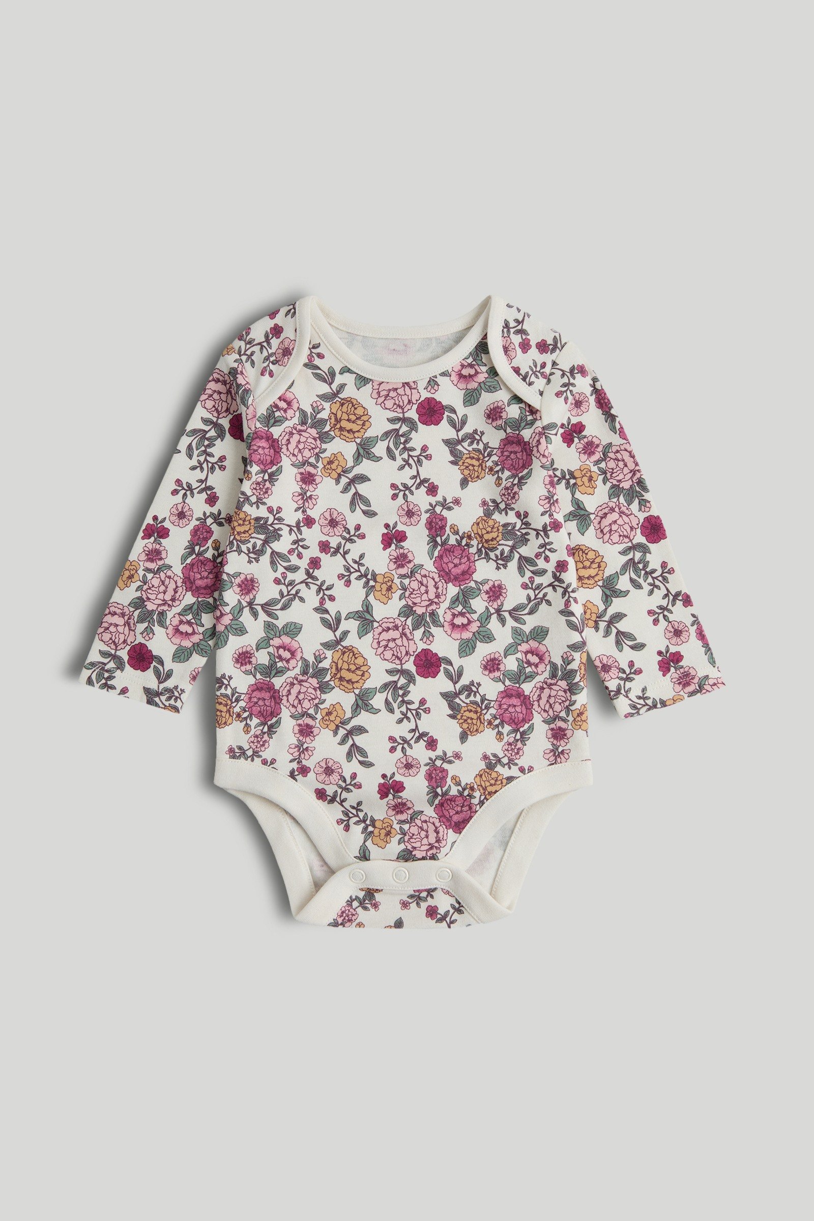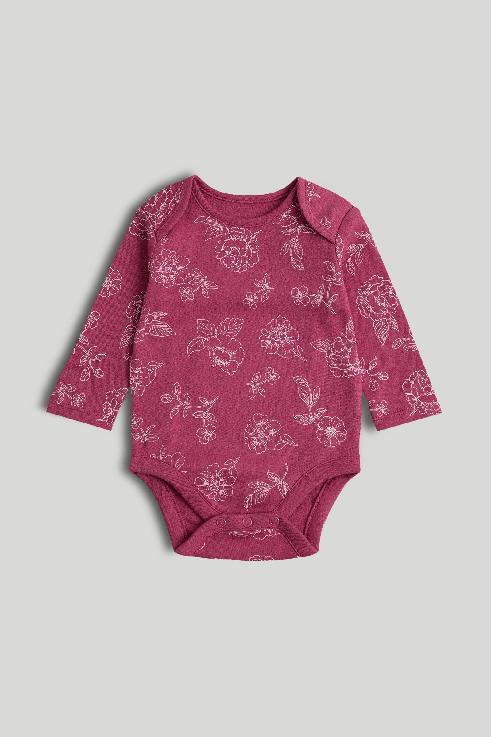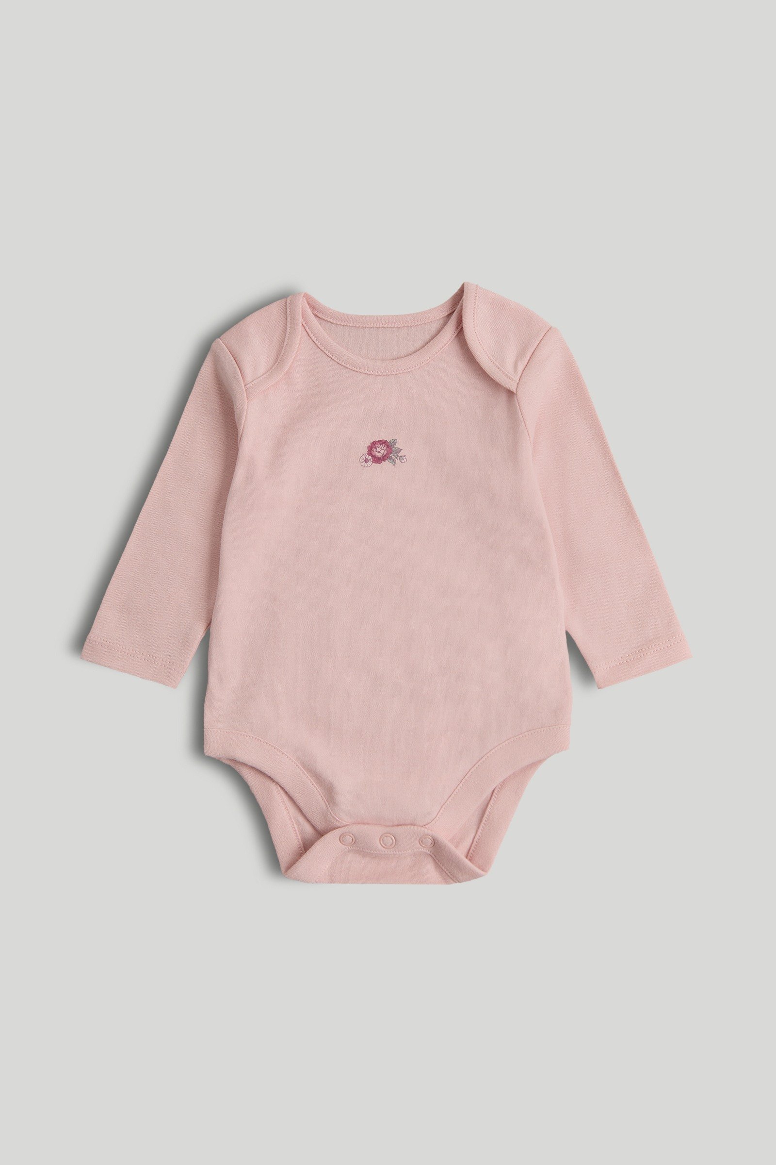 - Mothercare Essentials Girls Printed Long Sleeves Bodysuit - Pack of 5 - Pink
