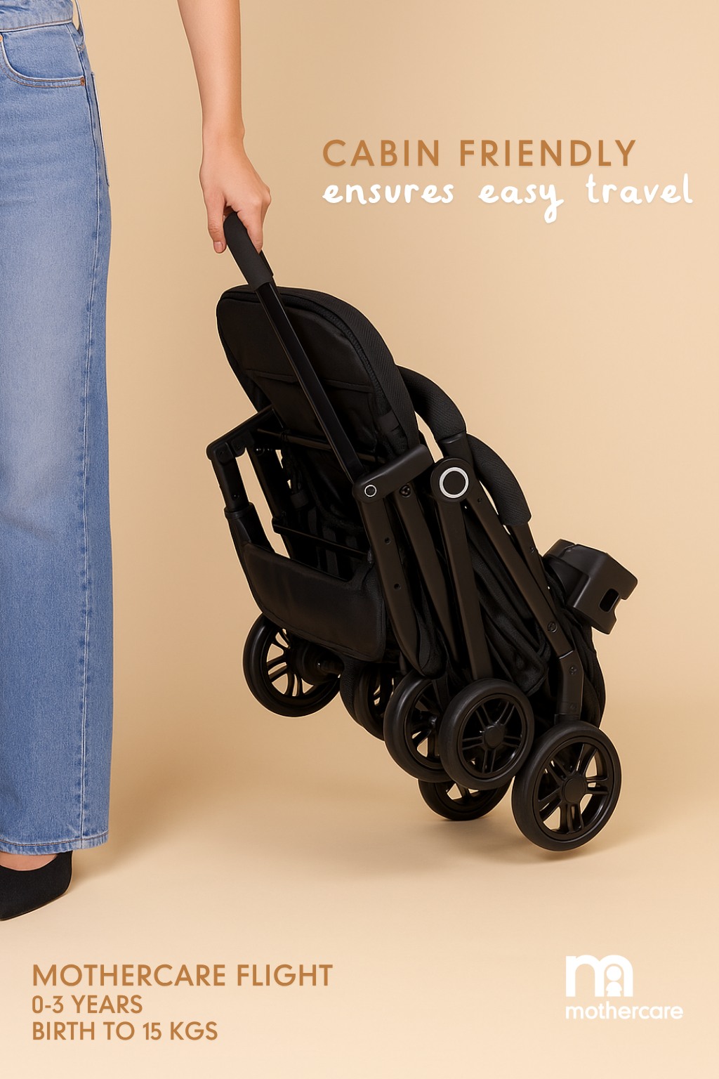 Mothercare Flight Baby Stroller - Cabin-Friendly Pram with Pull Handle for Babies From 0-3 Years(Birth To 15Kg)- Black