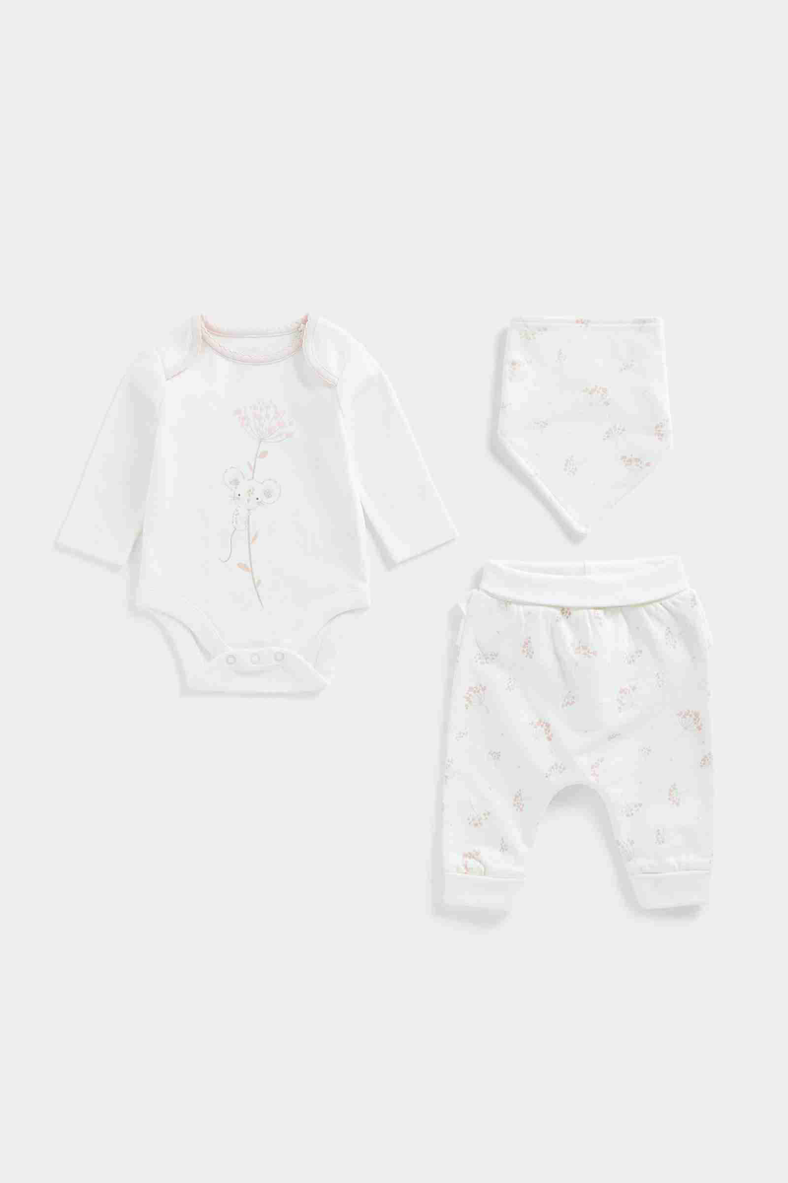 We know how busy new parents are, so we've put together this adorable little outfit just for you and your baby. A lovely gift, and ideal for your hospital bag, each piece is made from soft-on-skin cotton. Filled with sweet prints and delicate embroideries with design details to make dressing easy and keep your baby as comfy as can be.