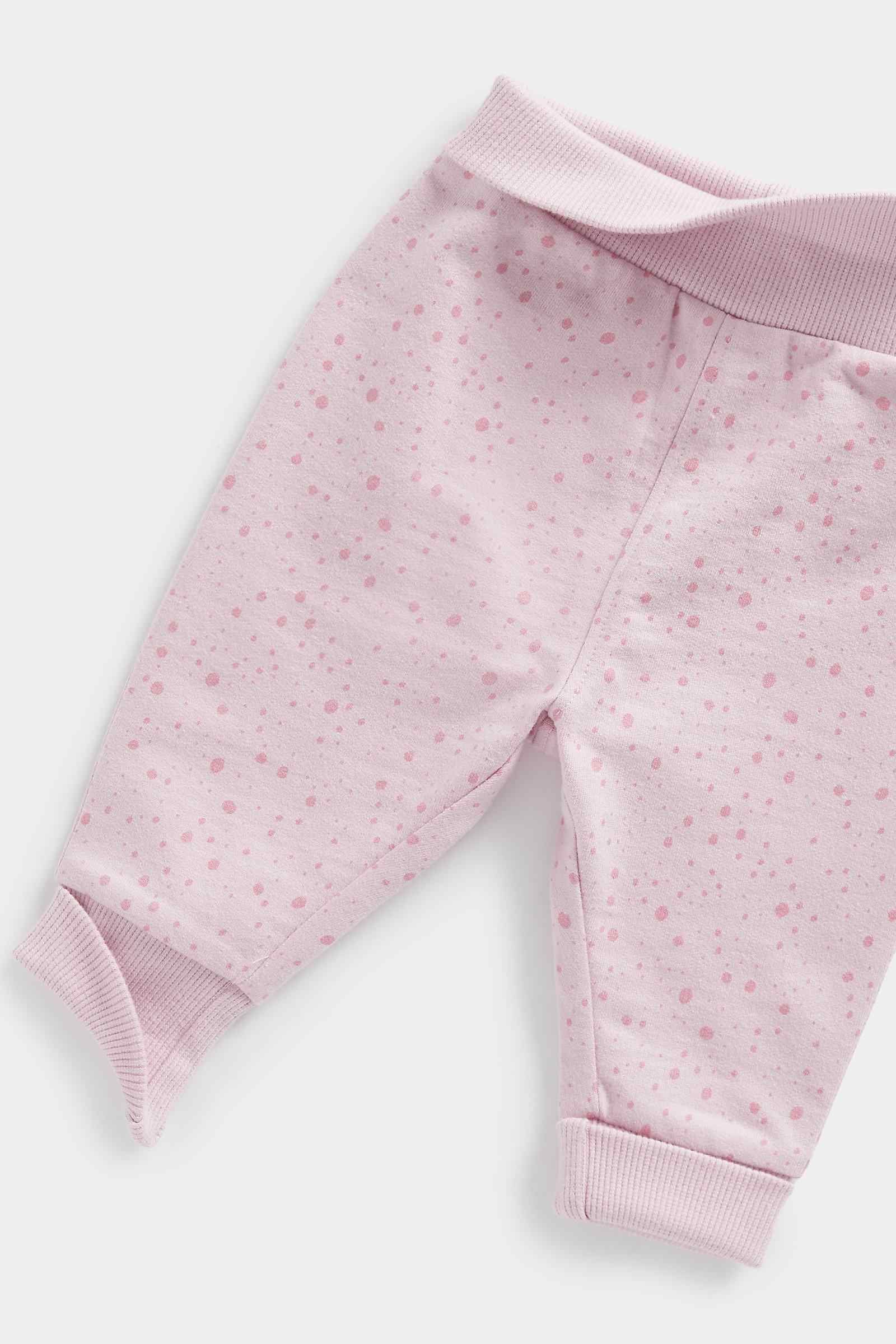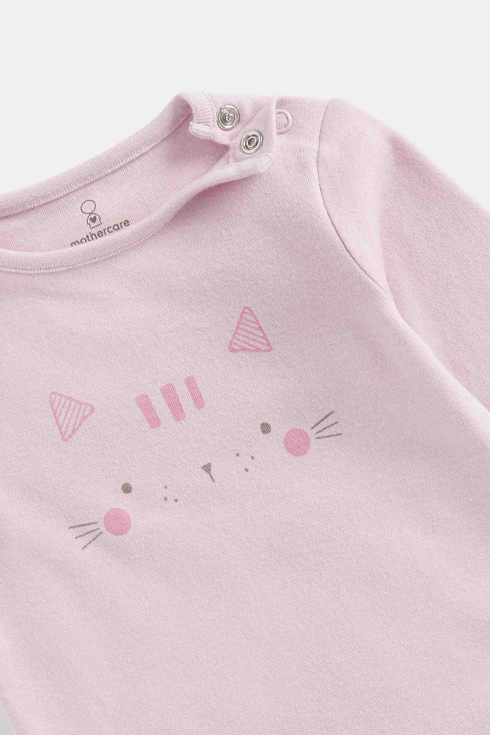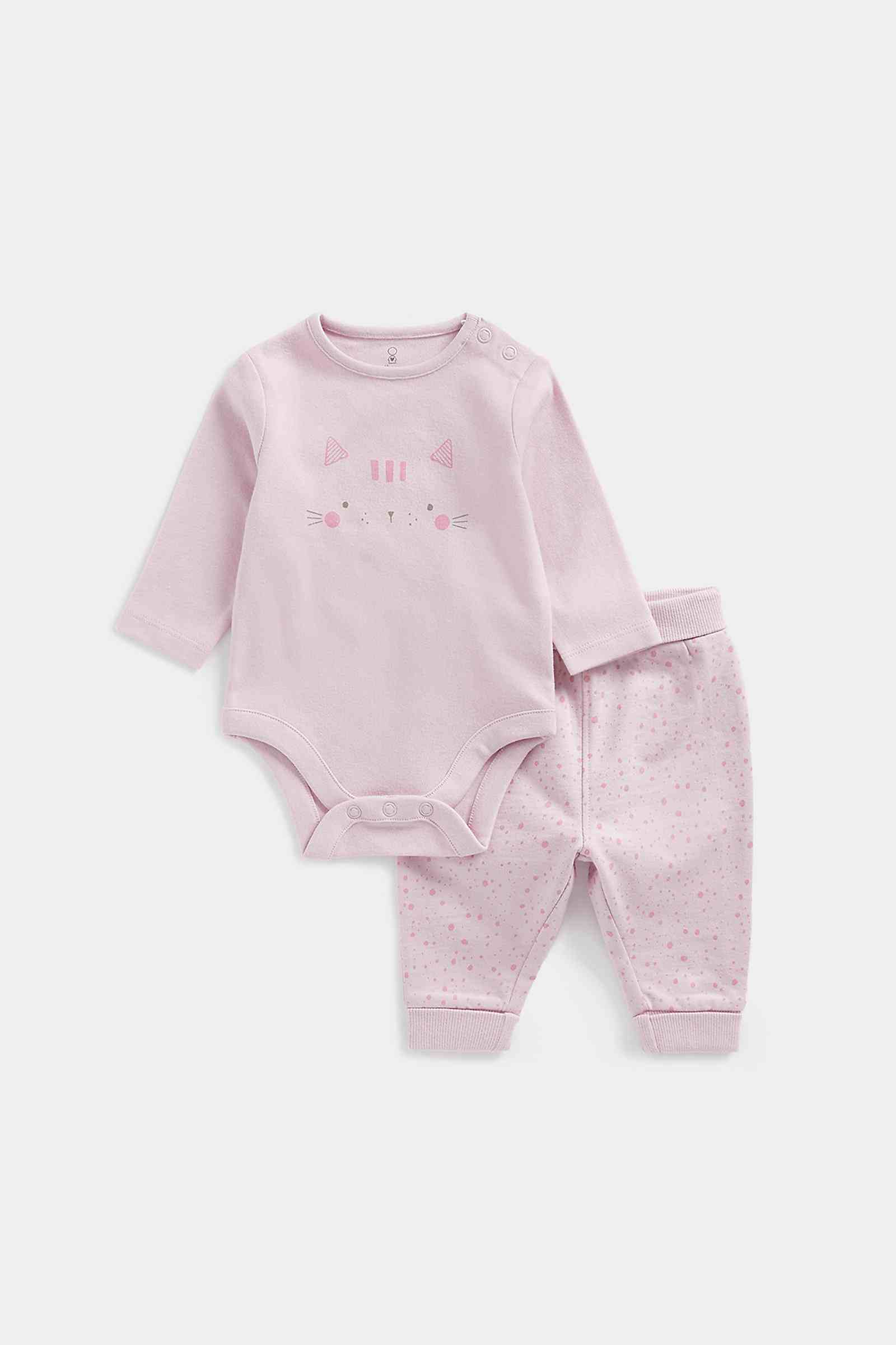 This pink bodysuit and jogger set is made for the littlest feline fans. Crafted from soft-on-skin cotton, the joggers feature a ribbed waistband and cuffs which can be turned up or rolled down, adjusting to the perfect fit as your baby grows. The coordinating bodysuit with cute cat print and pretty picot trim has simple snap fastenings making dressing your baby quick and easy.