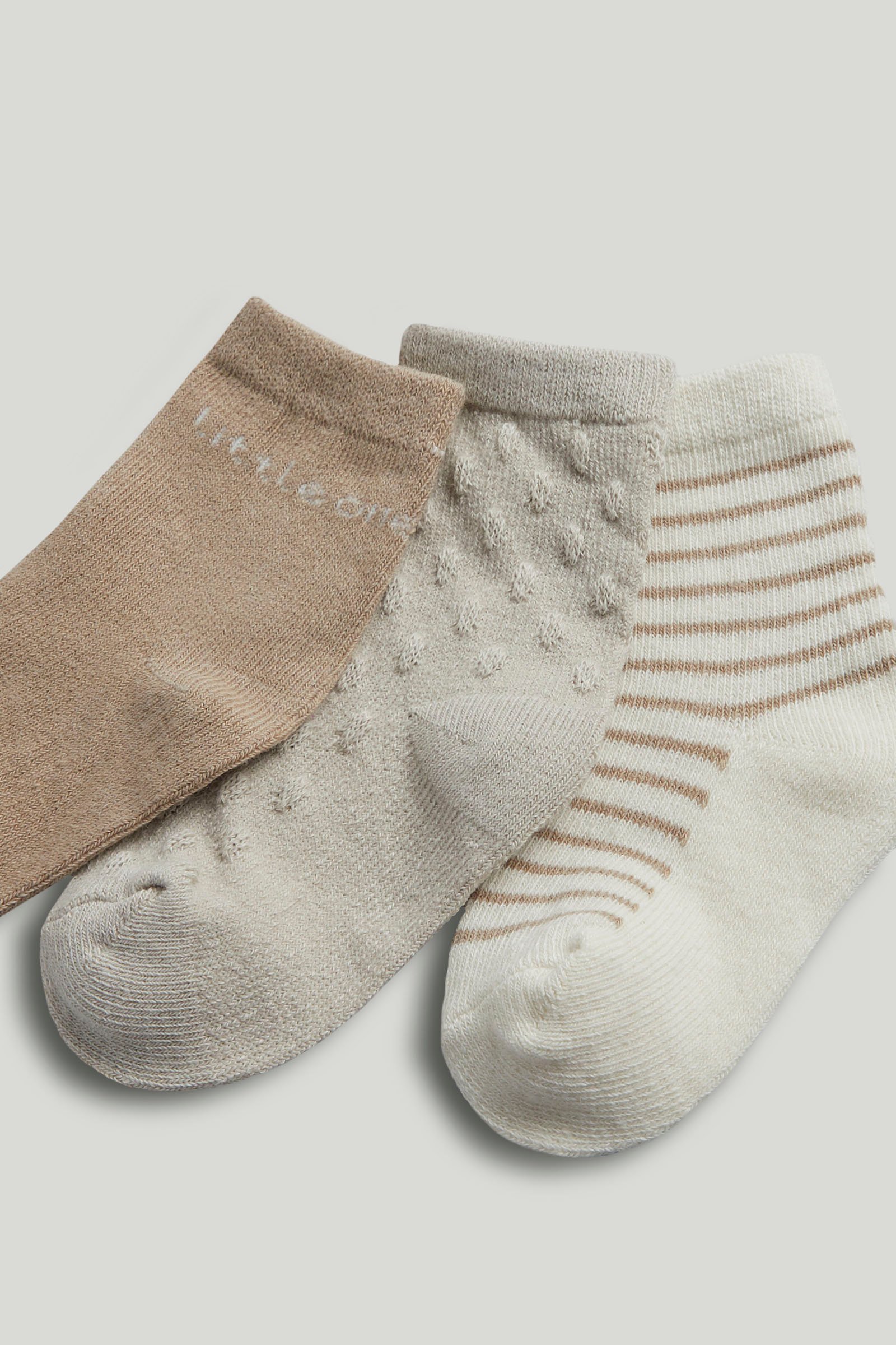 In neutral tones, these socks are soft and cosy for little feet.