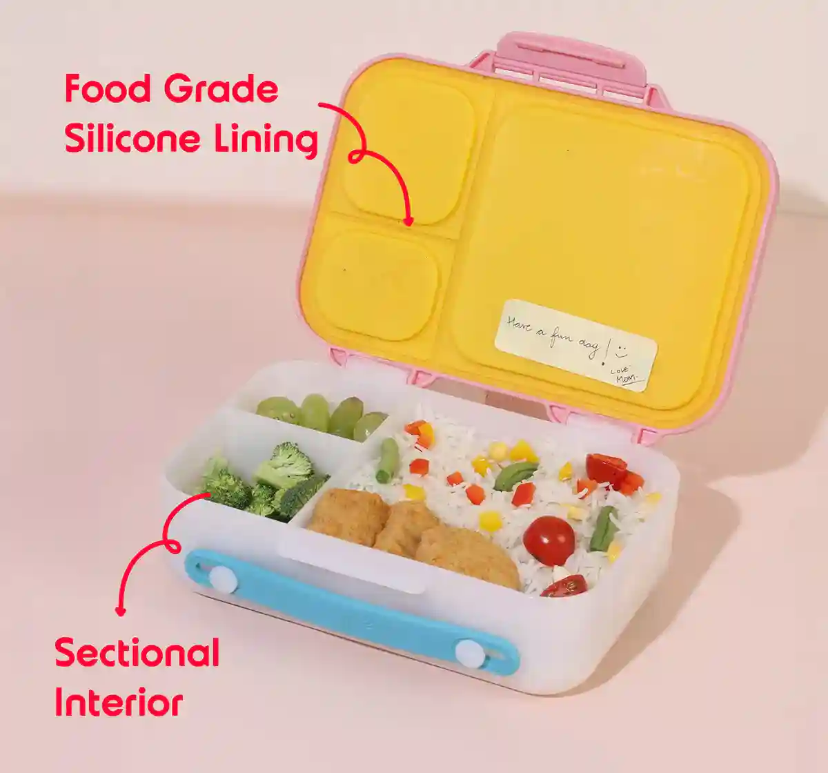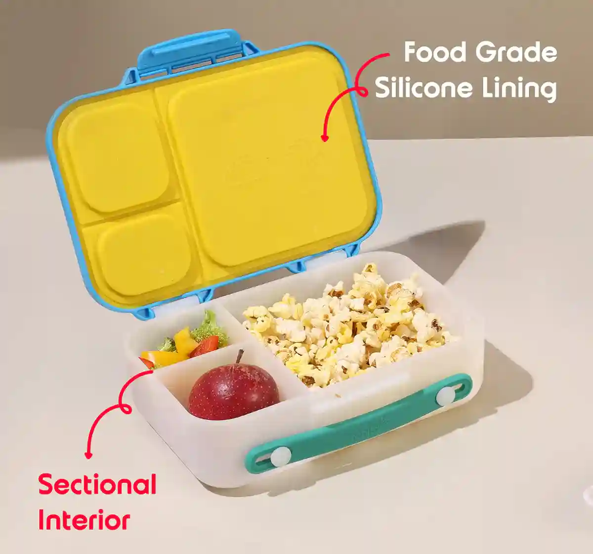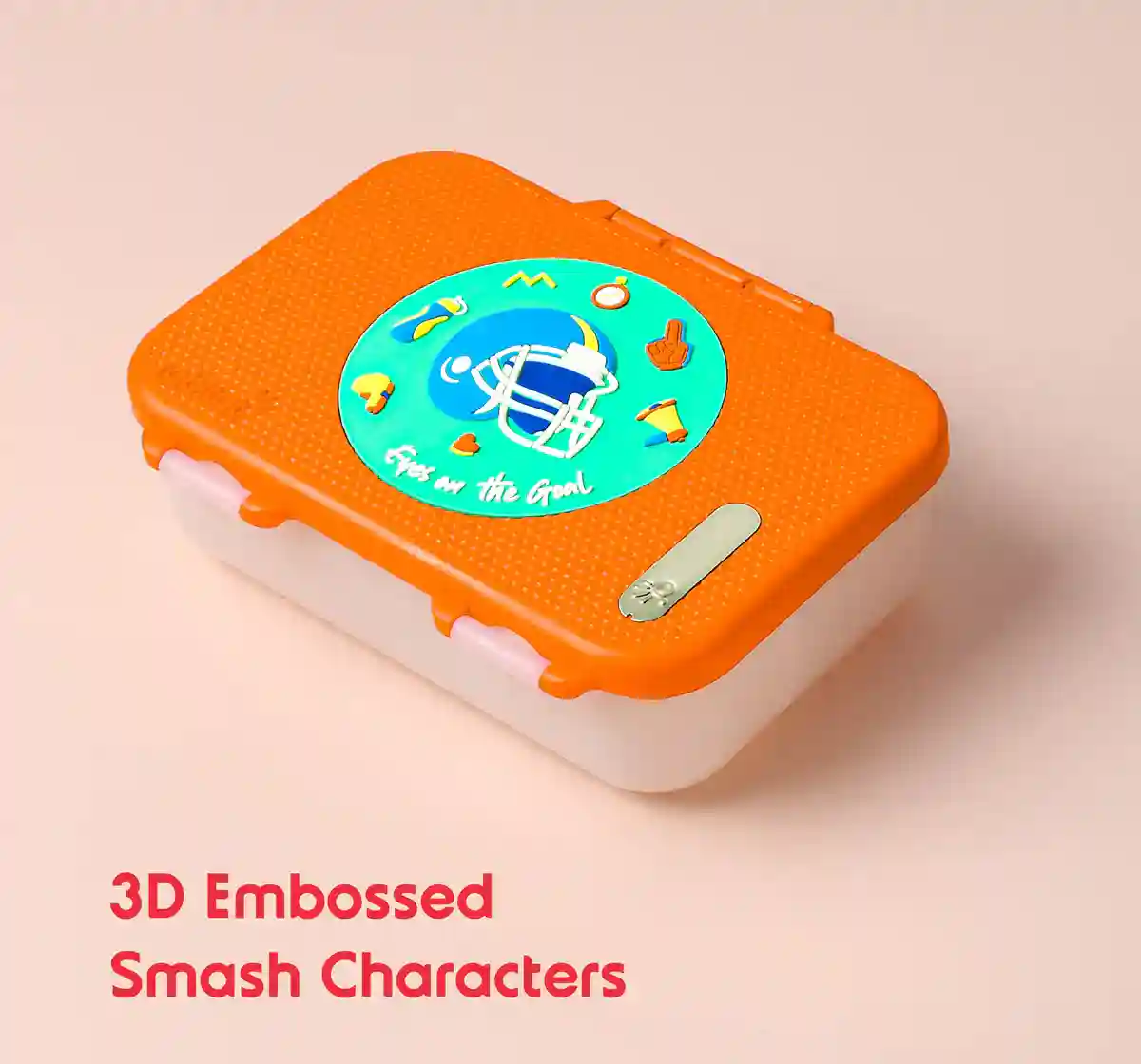 Say hello to Munchbee, your li’l one’s the lunchtime companion with a flair for the quirky. Its divided interior ensures goodbye to food mingling, making your li'l one's favorite treats in place. Munchbee comes with a flick-lock front, securing the munchies, and a poppin' carry handle for that extra splash of swag. Munchbee also flaunts a company of lively Smash characters, turning mealtime into a whimsical carnival. Plus, with a custom steel strip, it's all set for a personalized touch– because Munchbee believes lunchtime should be as unique as your little one!