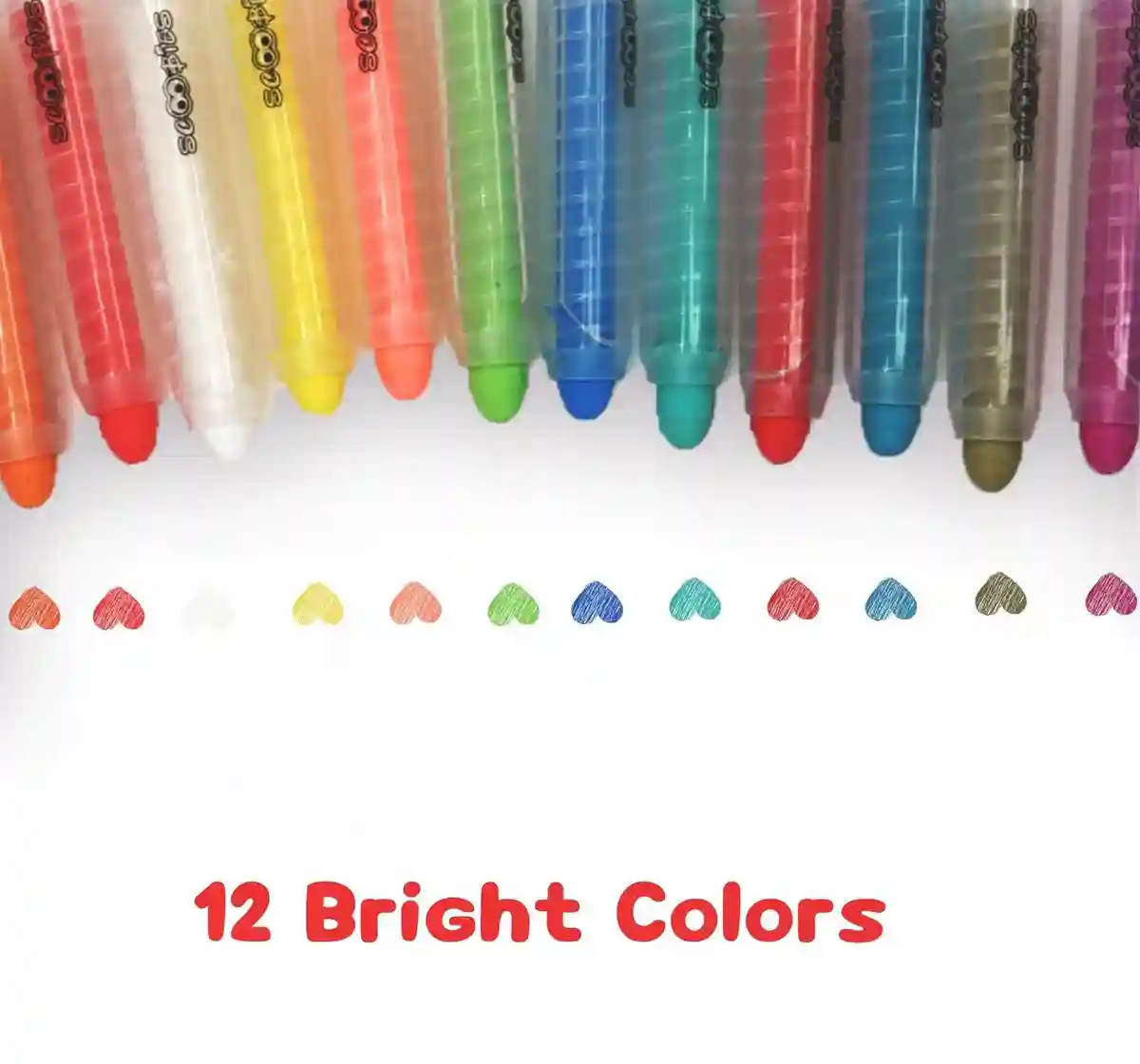 This pack of 12 non-toxic and dust-free Grafitti Chalks encourages free-form creativity. This eco-friendly chalk set of 12 soothing colors comes in a portable plastic box and works well on porous and non-porous surfaces. It helps in improving hand grip and comes with twist-up action.
